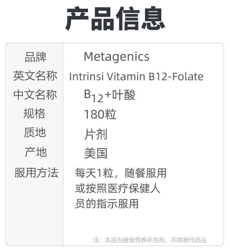 📚 正品美国直邮Metagenics麦特金尼斯B12叶酸备孕孕前营养素180粒