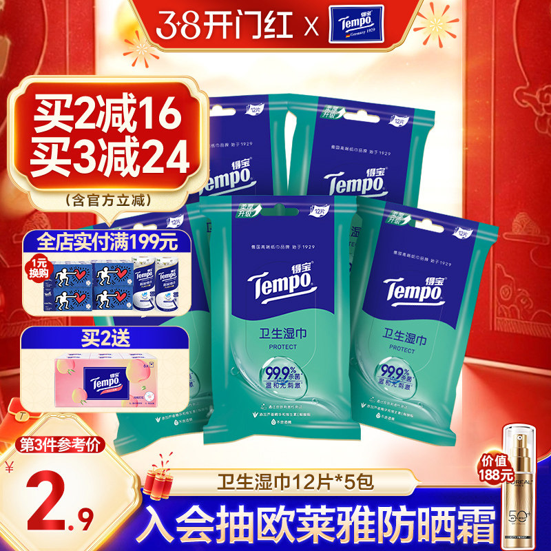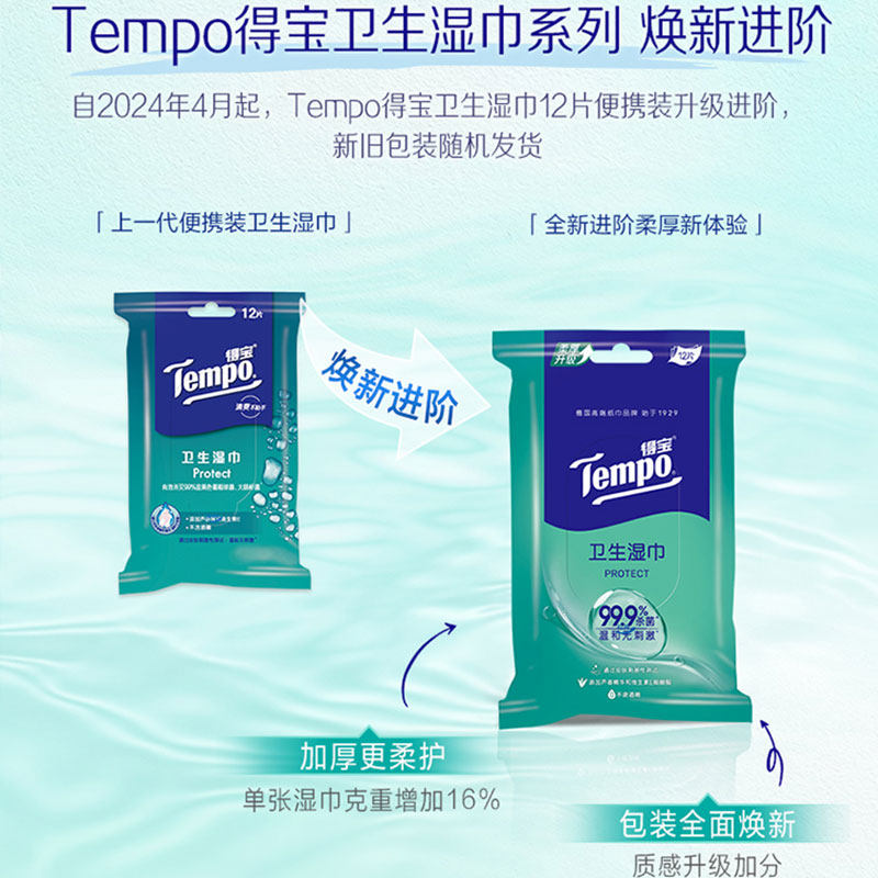 📚 【新旧混发】Tempo得宝12片*5小包便携装卫生湿纸巾德宝免洗手