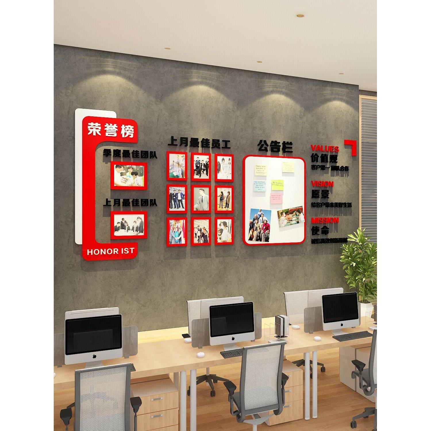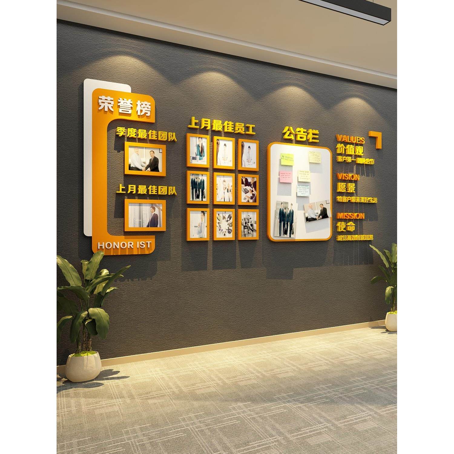 📚 公司荣誉展示墙装饰布告栏墙上贴纸优秀员工风格照片背景板企业文