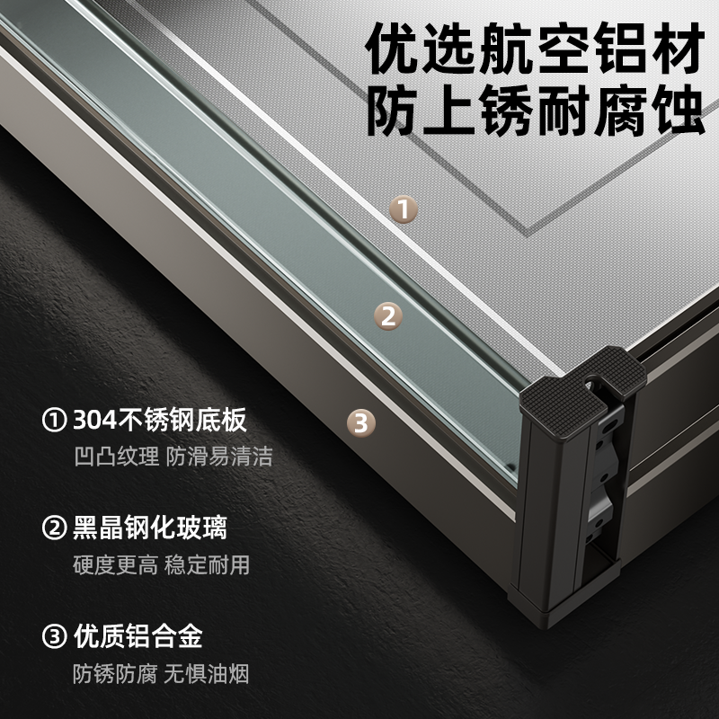 📚 金牌橱柜拉篮厨房橱柜太空铝钢化玻璃抽拉碗柜双层碗碟三层抽屉式