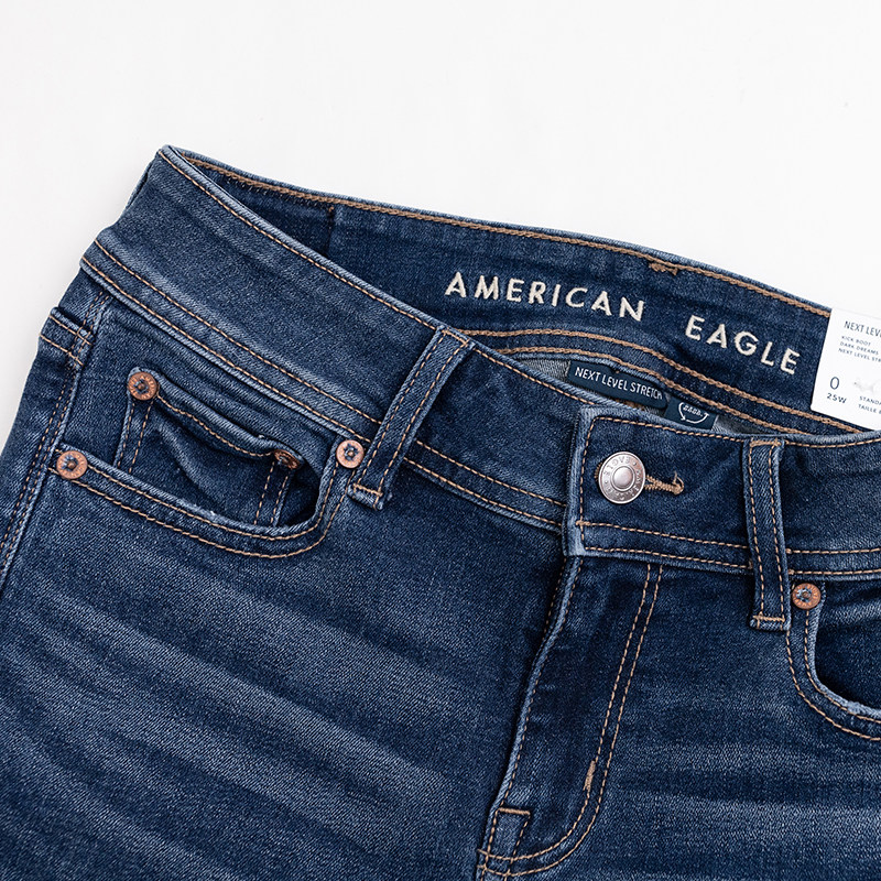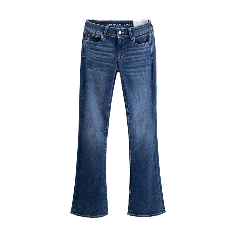 📚 AEO美国鹰 秋季新款蓝色中低腰弹力牛仔裤女修身显瘦提臀微喇叭潮