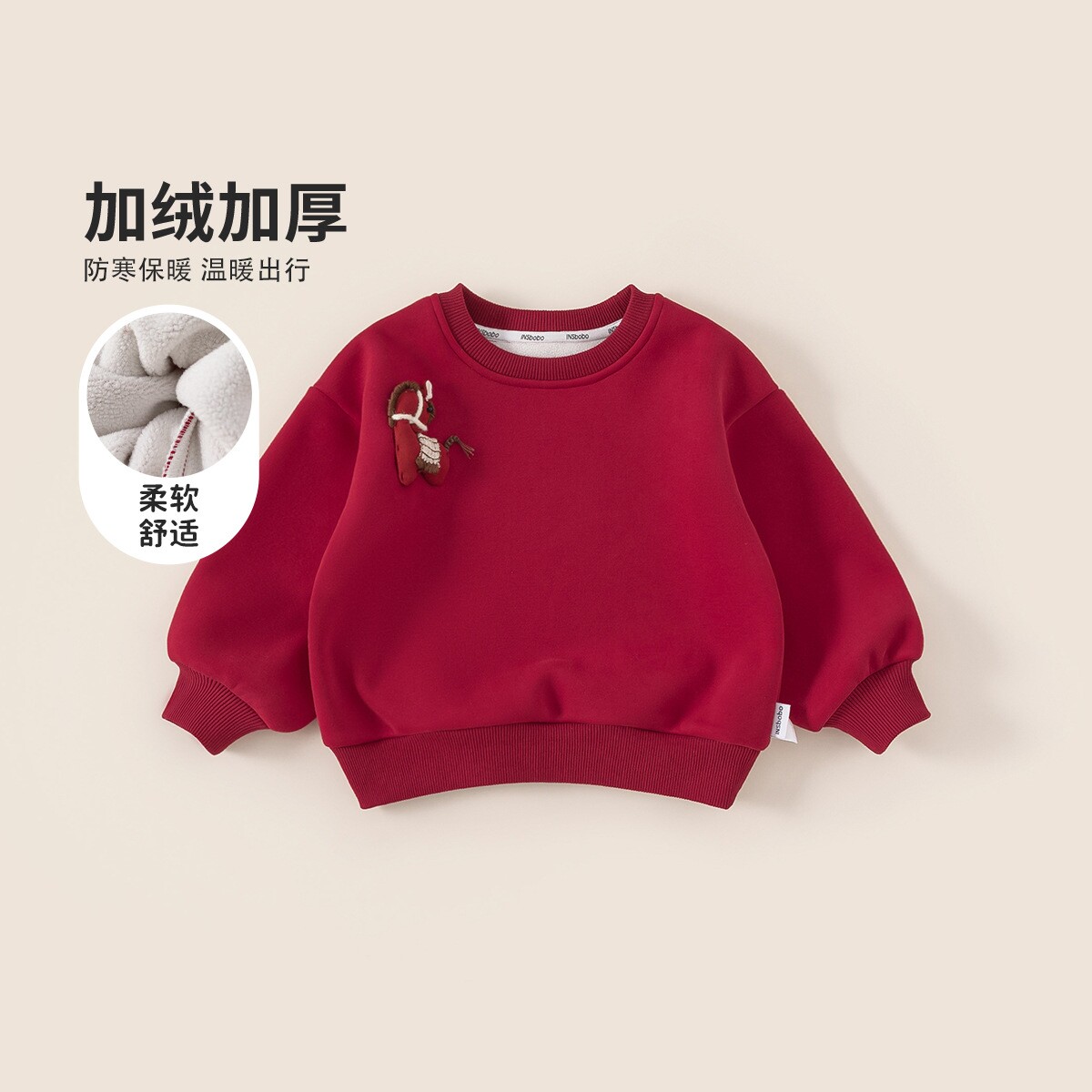 📚 男童拜年服卫衣加绒加厚中小童套头衫内搭红色冬款年服女童衣服冬