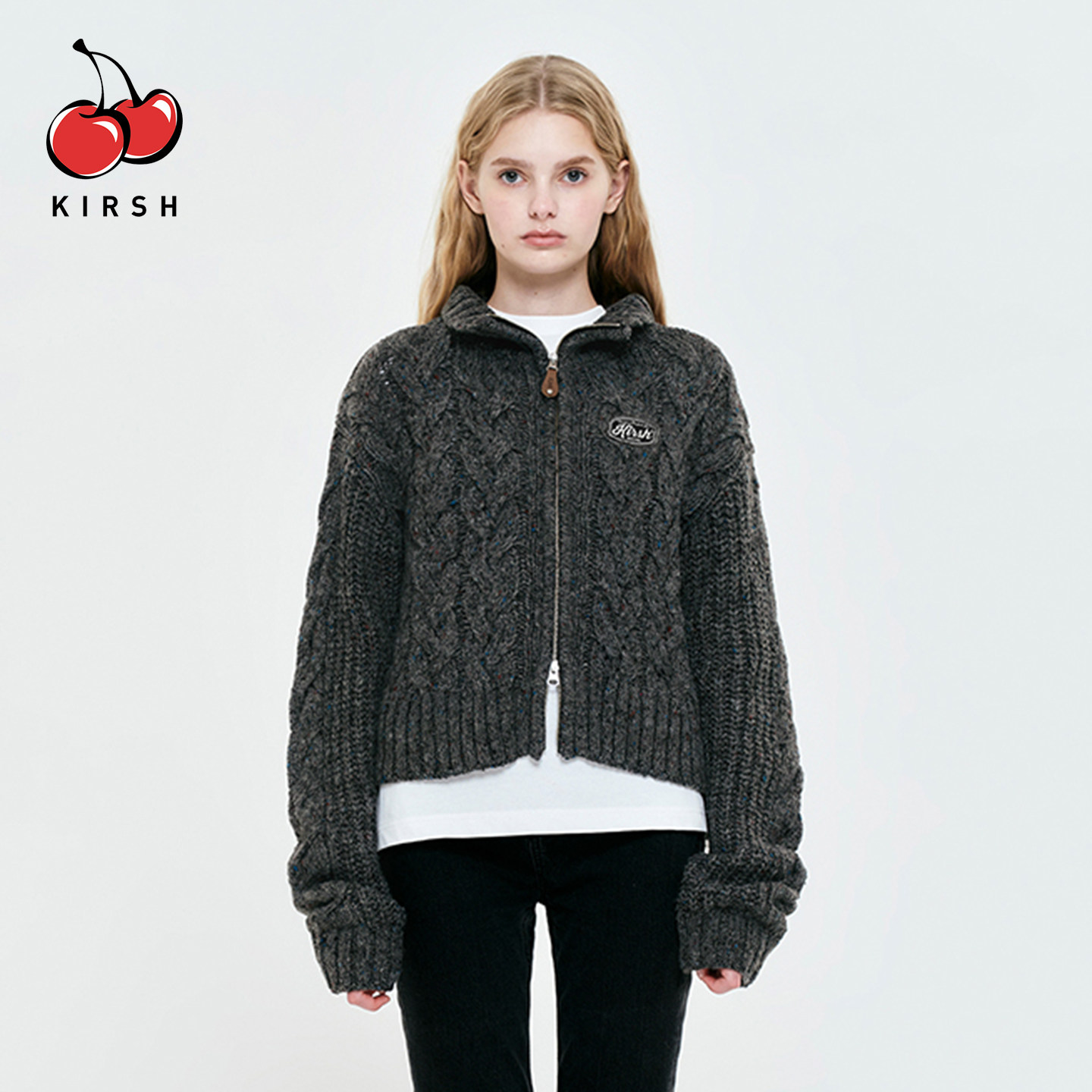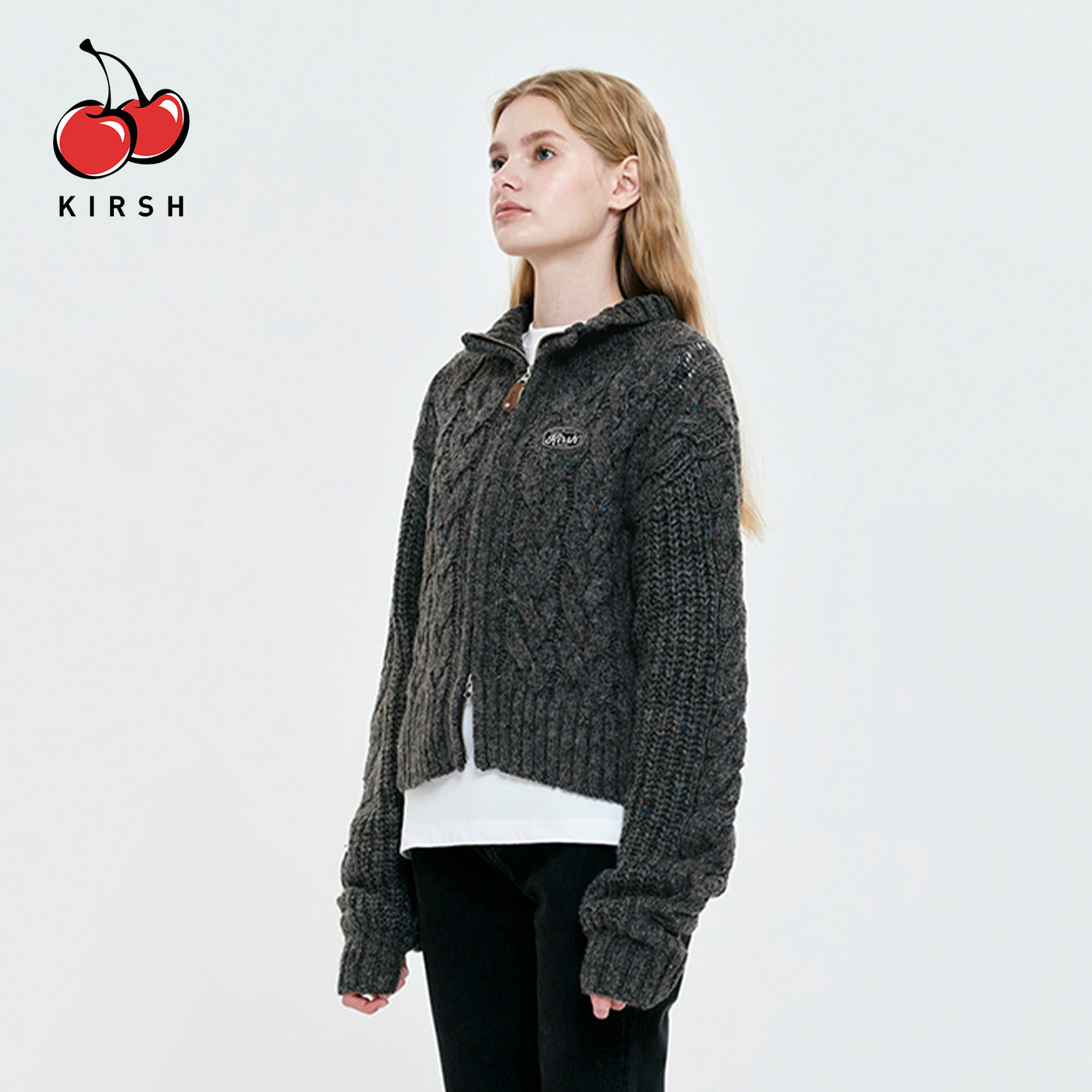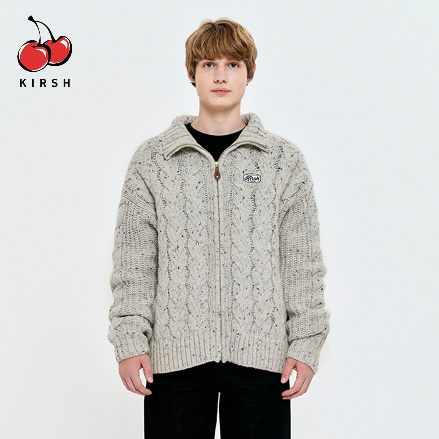 📚 kirsh情侣款慵懒松弛风半高领男士拉链毛衣开衫麻花针织外套女冬