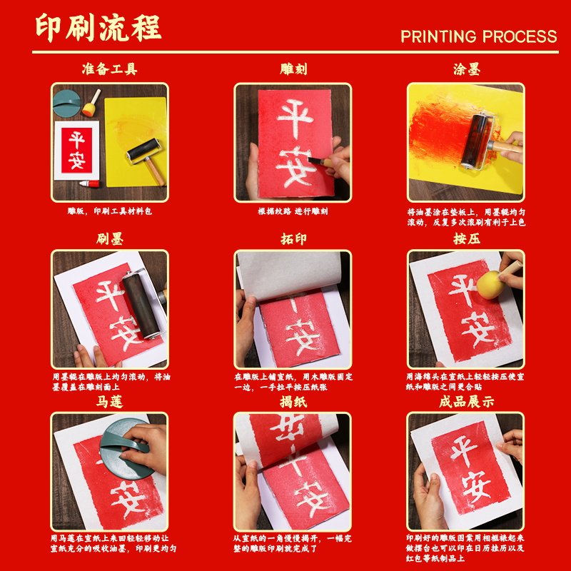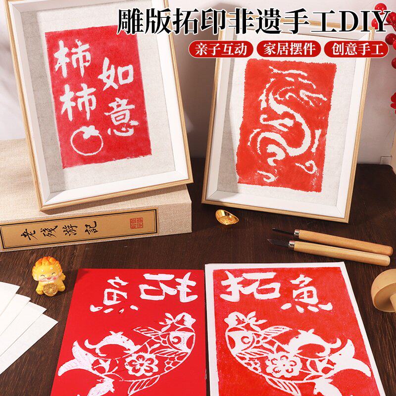 📚 雕版拓印套装材料包端午节非遗手工diy印刷模板版画印刷术暖场