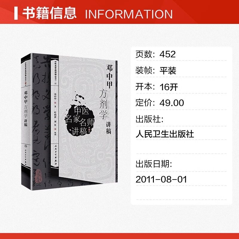 📚 邓中甲方剂学讲稿 中医名家名师讲稿丛书 中医书方剂学讲义 中医名医名方参考书籍 中医药学基础理论入门书籍 人民卫生出版社
