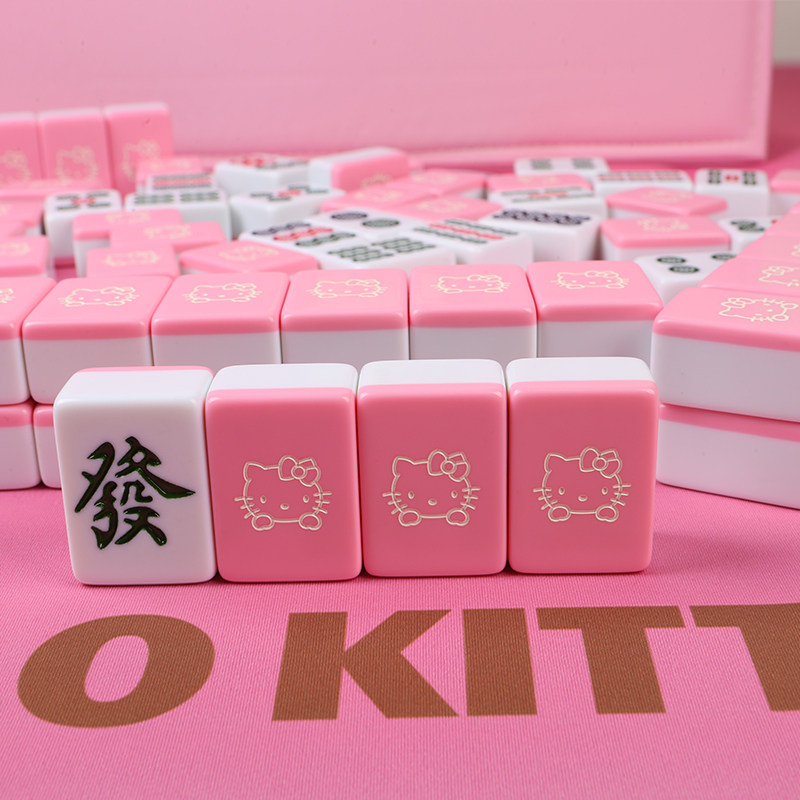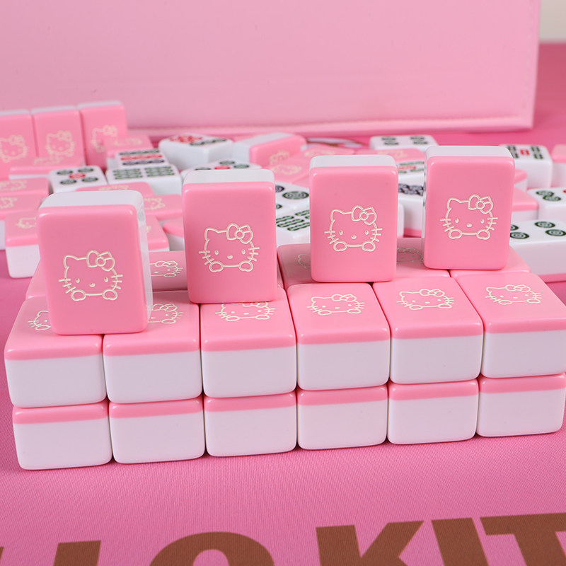 📚 手搓家用麻将牌可爱小猫粉色可KT猫卡通麻将40/42/44号定制麻将