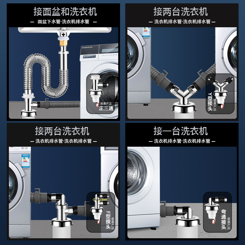 📚 洗衣机地漏专用接头排水管下水道防臭防溢水卫生间二合一三通盖