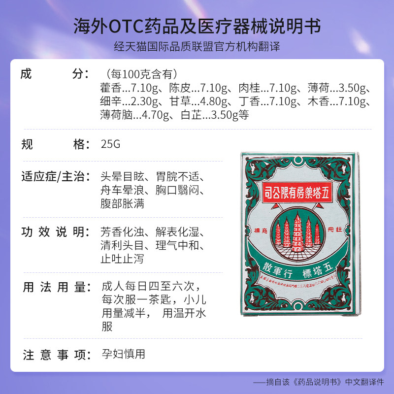 📚 五塔标行军散香港版25g大瓶肚痛散吐泻腹胀药救急行军五塔散泰国