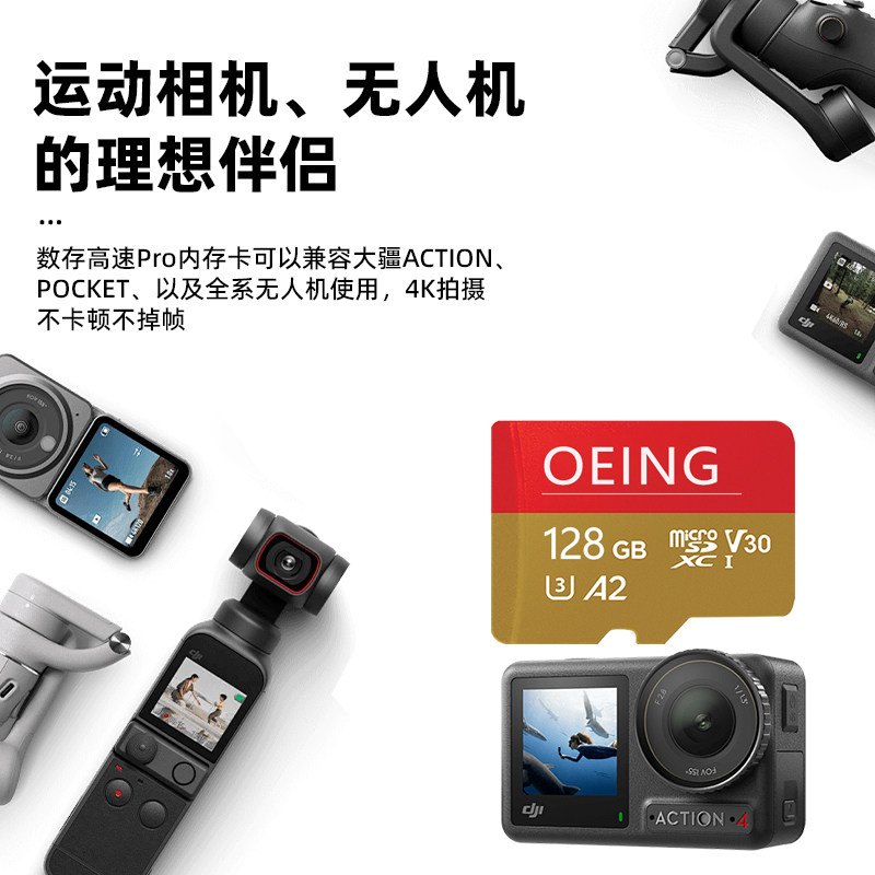 📚 适用于大疆action4内存卡action5pro高速存储卡运动相机专用tf卡