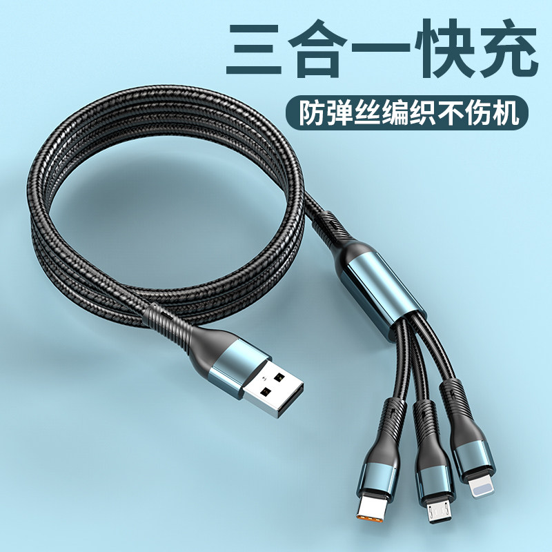 📚 匿名者数据线三合一充电线器头一拖三超级快充适用Typec安卓多头