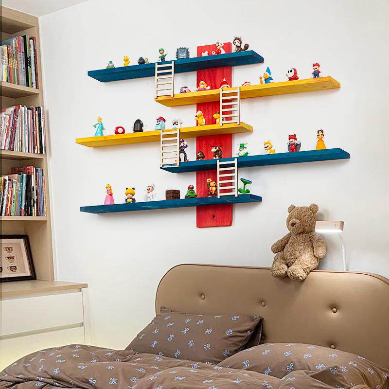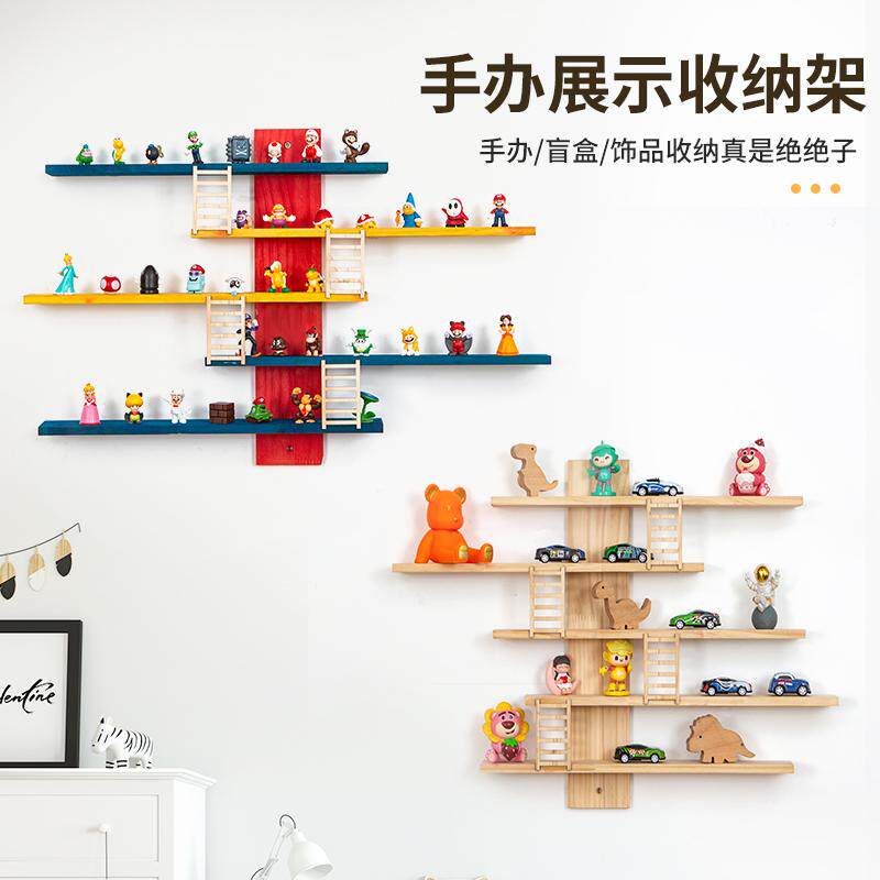 📚 壁挂式盲盒收纳架DIY泡泡玛特手办实木展示架挂墙卧室玩具整理架