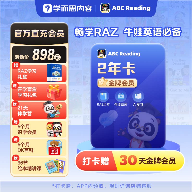 📚 【官方旗舰】ABCReading正版美国RAZ绘本儿童早教启蒙英语会员卡