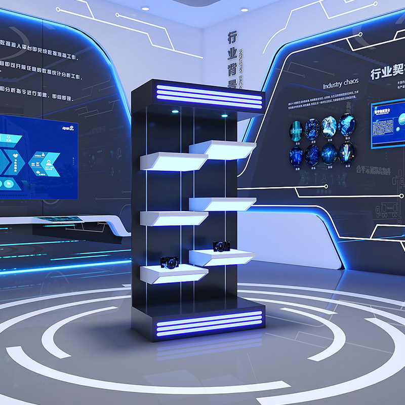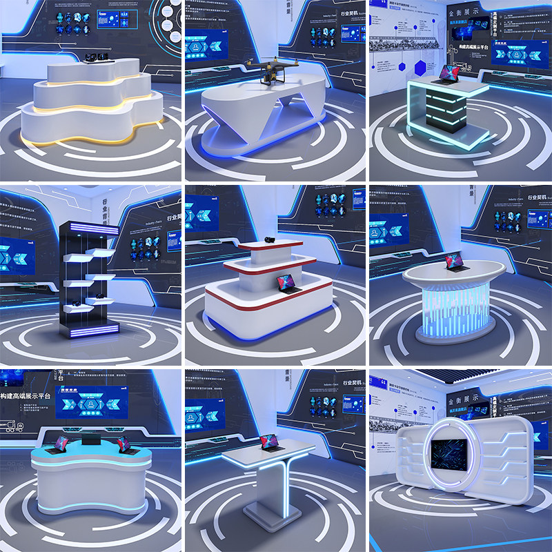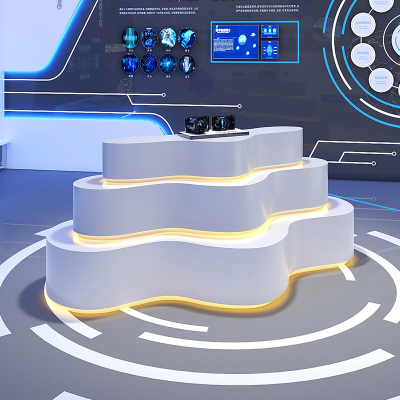 📚 异形烤漆展厅展台科技感产品陈列柜发光体验桌玻璃中岛展示柜台
