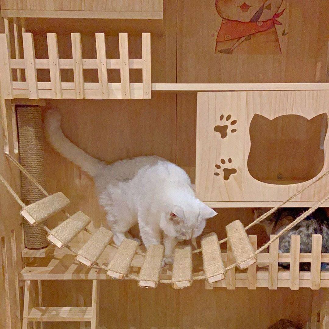 📚 实木猫绳梯猫爬架自制配件梯子猫窝软梯猫吊桥猫咪可订做麻绳软梯