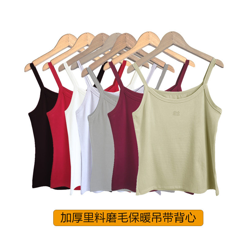 📚 2025新款吊带保暖背心女修身高弹加厚内穿磨毛发热打底细带背心女