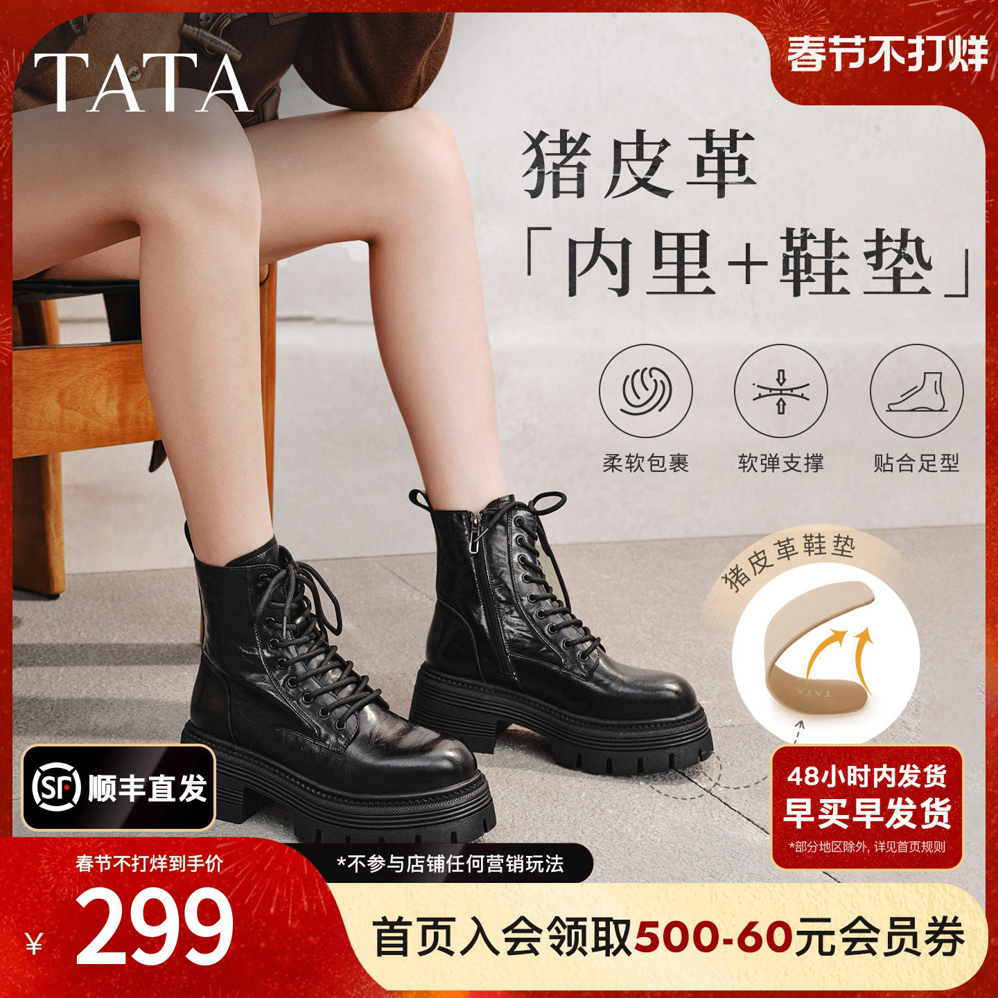 📚 TATA他她巡星者靴子女鞋工装靴加绒千层马丁靴英伦短靴CG801DD5