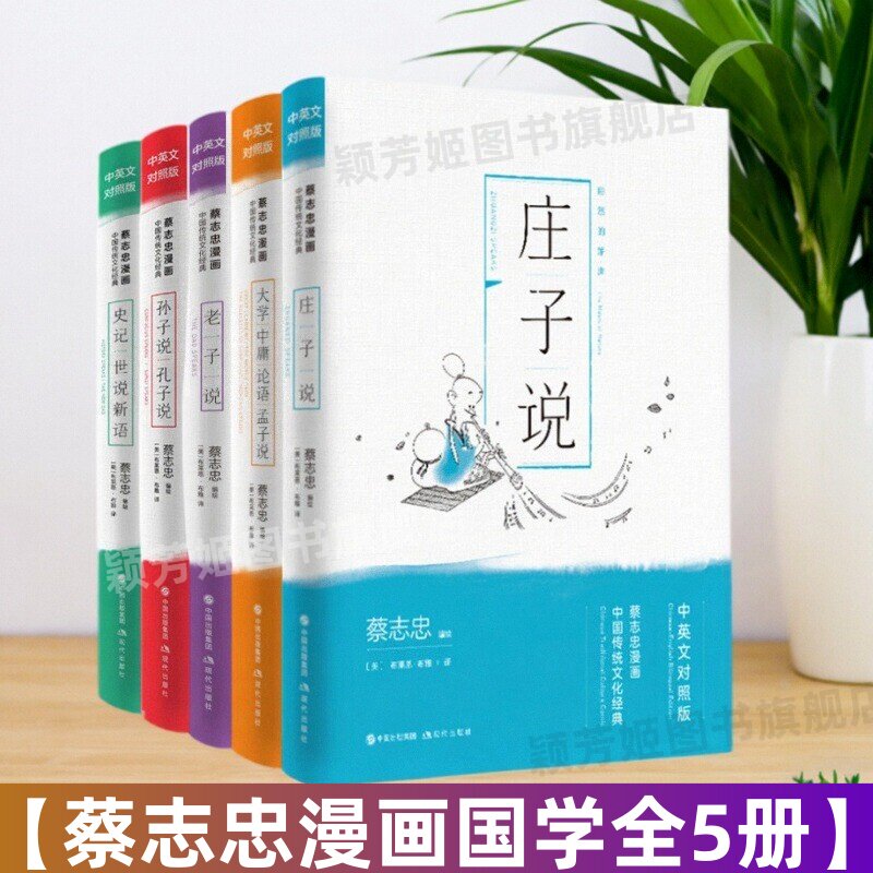 📚 【蔡志忠漫画国学全5册】中国传统文化经典中英文对照版 庄子说+老子说+大学 中庸 论语 孟子说+史记 世说新语+孔子说 孙子说 书籍
