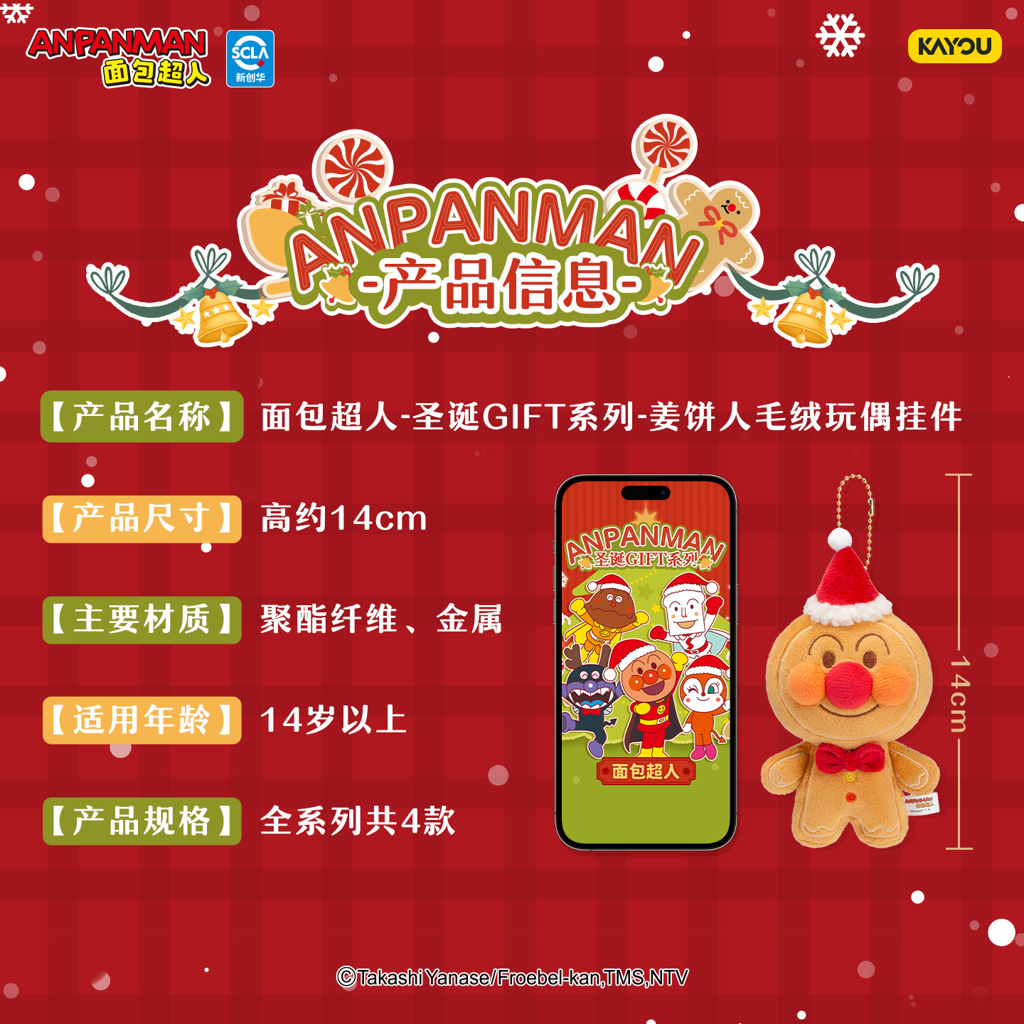 📚 卡游 面包超人圣诞GIFT系列姜饼人毛绒玩偶挂件 官方正版周边礼物