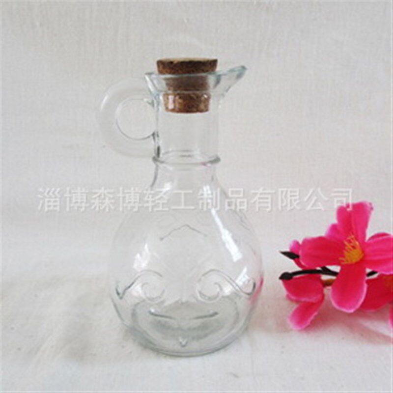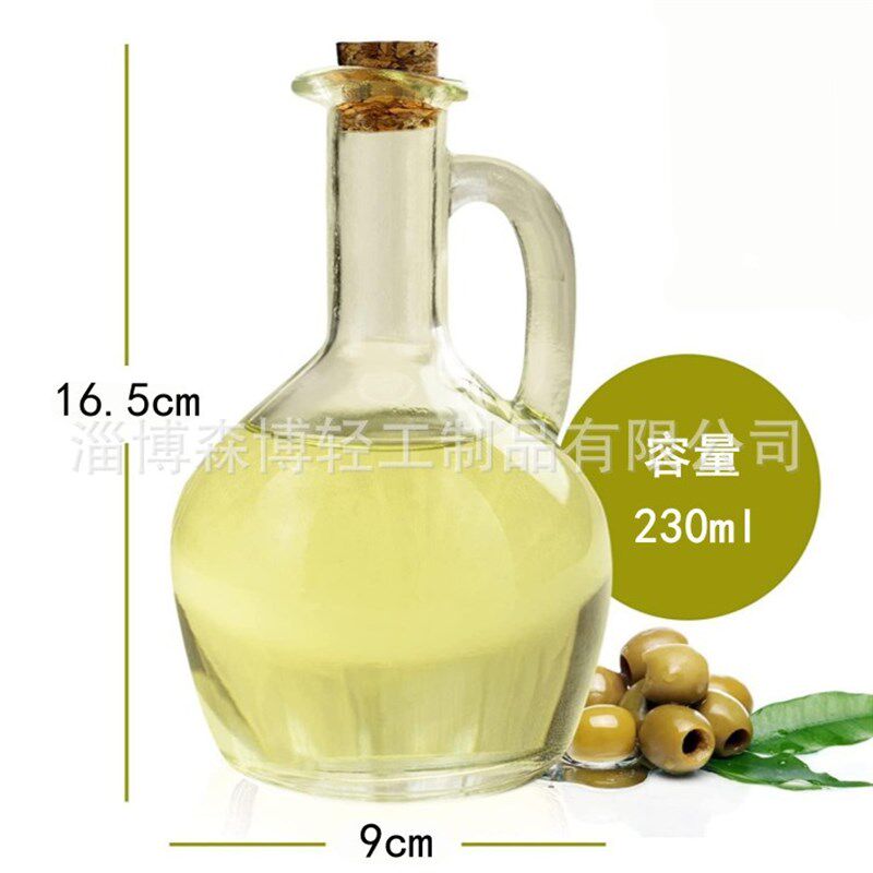 📚 速发带把手圆形油瓶细口皿嘴软房酱油醋器小厨木塞手提玻璃油壶