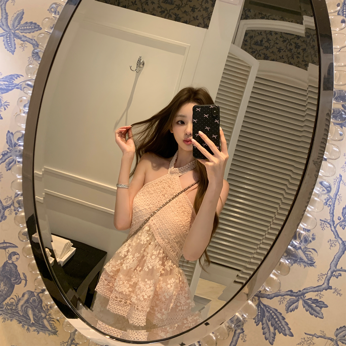 📚 你的懒懒llan【芙渠盈盈】松弛性感蕾丝拼接挂脖上衣+半裙套装女