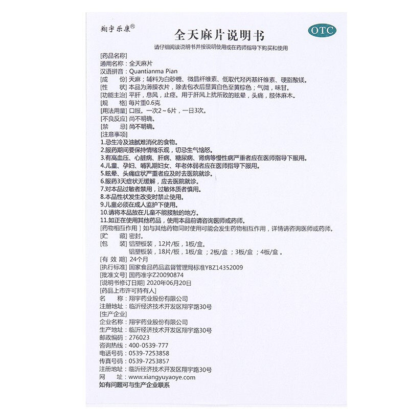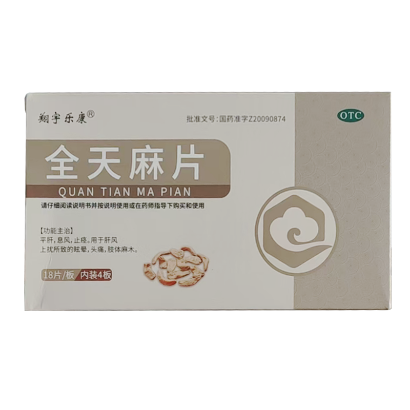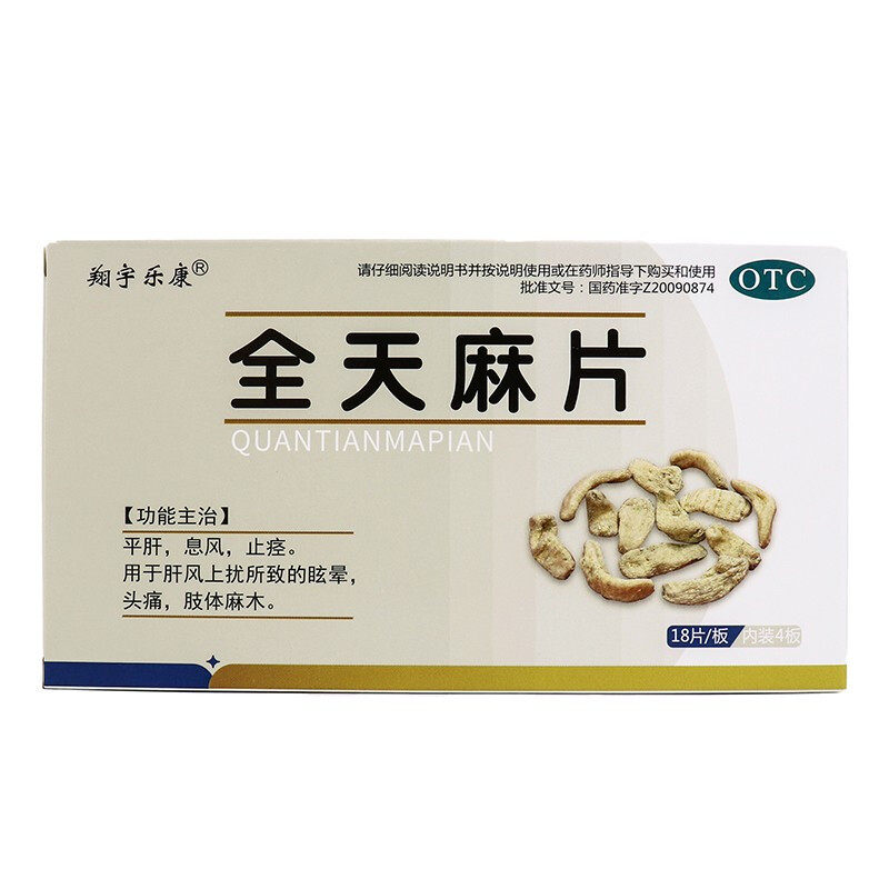 📚 翔宇乐康 全天麻片 0.6g*72片 平肝息风 止痉 肝风上扰所致的头痛