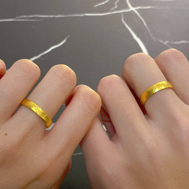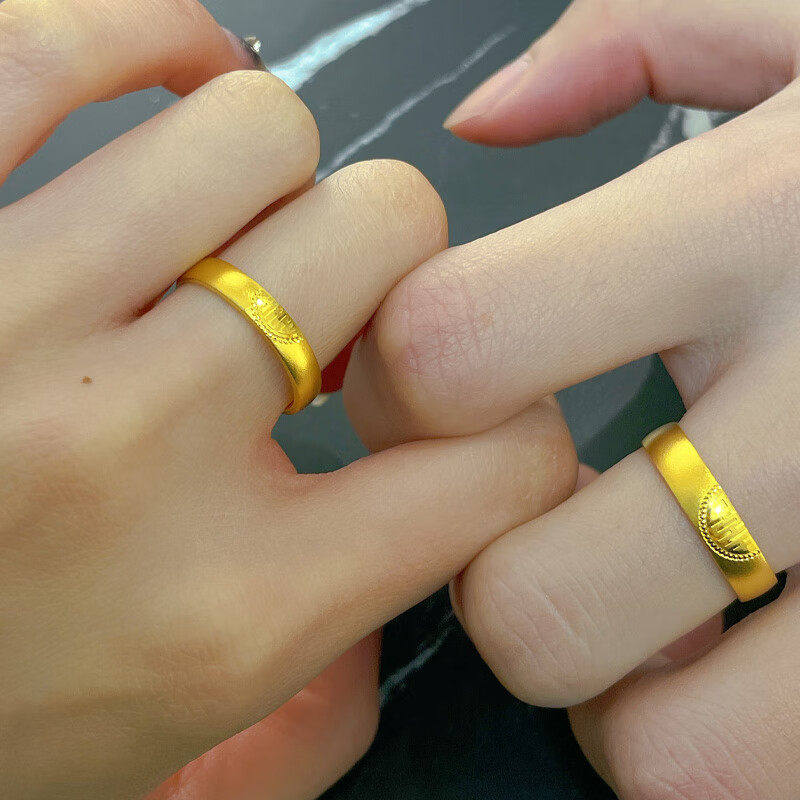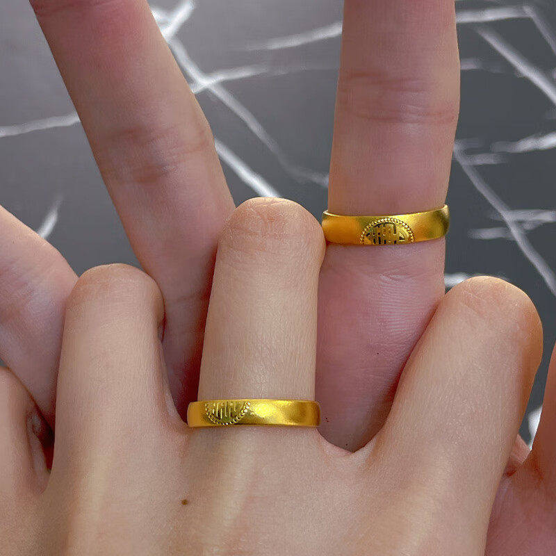 📚 古法双喜情侣戒指一对新中式婚嫁风黄金复古喜字活口结婚三金对戒