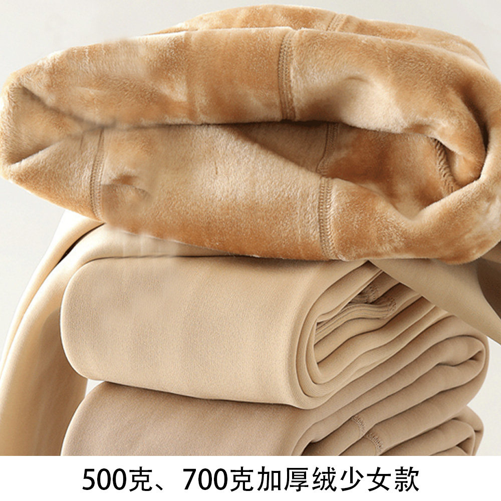 📚 女童肤色加绒加厚打底裤北方一条过冬肉色连脚袜中大童踩脚保暖裤