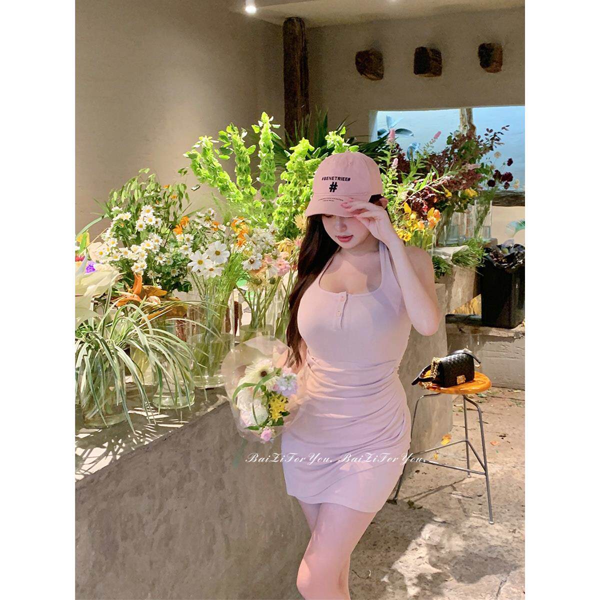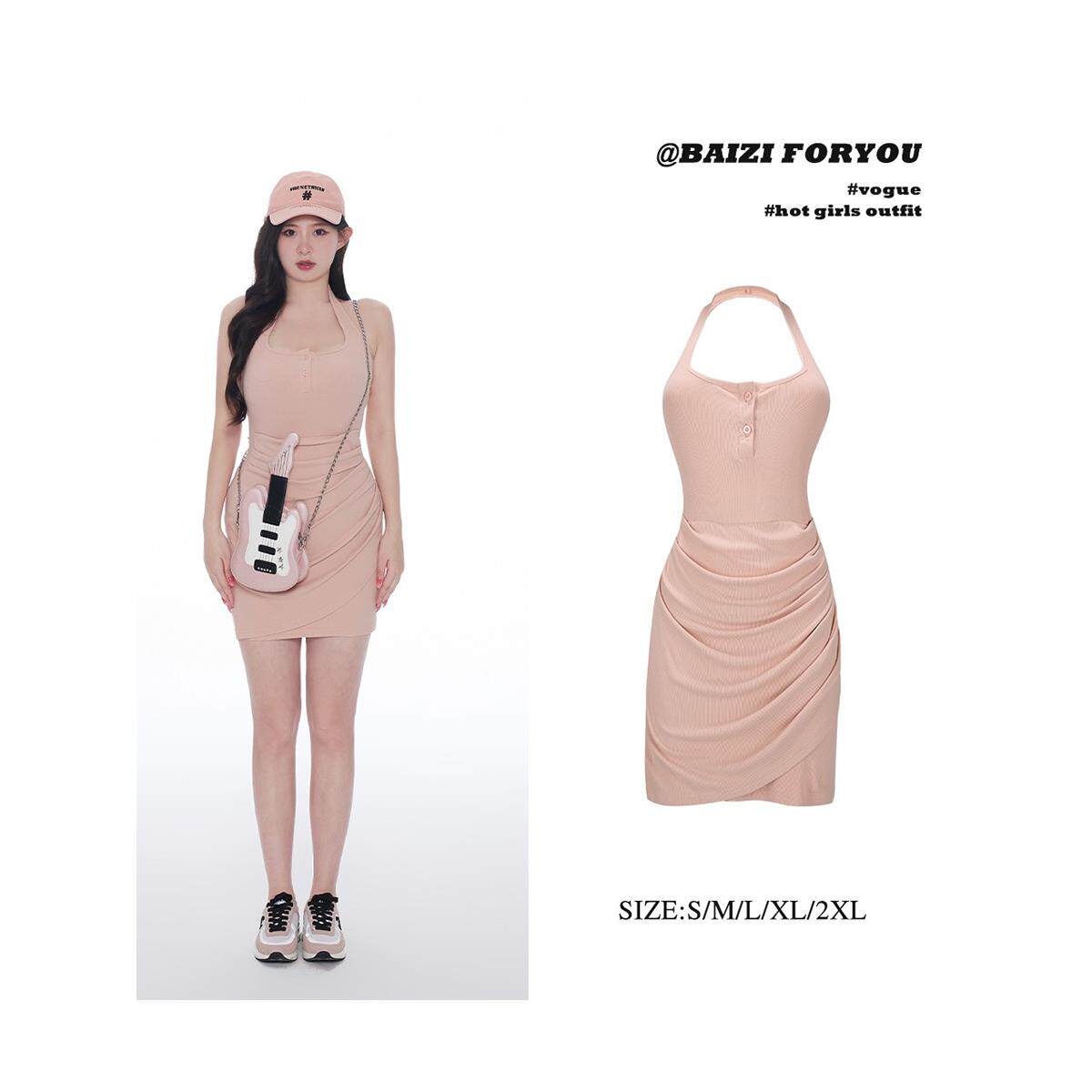 📚 【4色入·星冰乐挂脖裙】周白子春季微胖收腰显瘦包臀挂脖