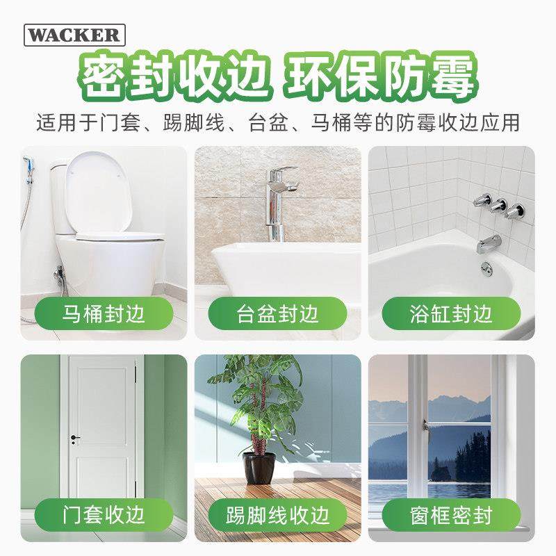 📚 德国瓦克DA防水防霉厨卫玻璃胶中性收边白色透明矽胶密封胶美容胶