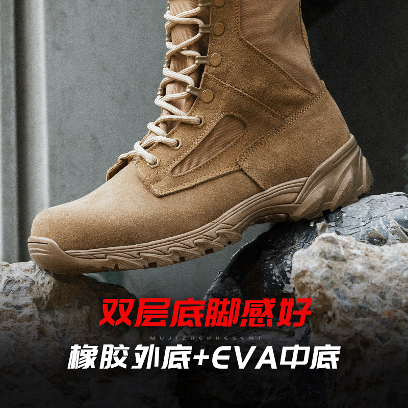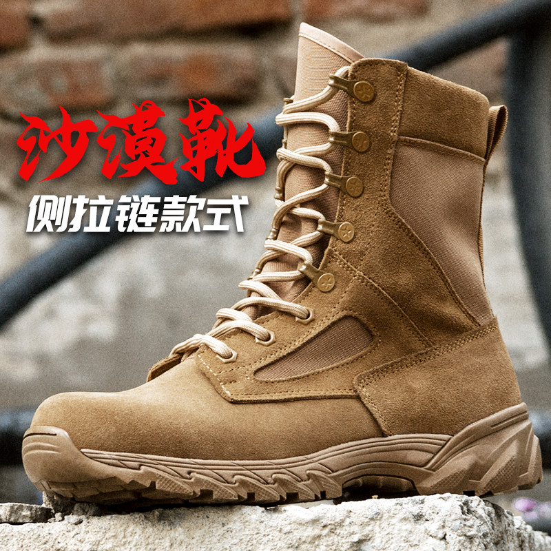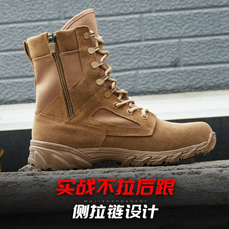 📚 棕色作战靴男高帮战术靴沙漠靴超轻拉链防水透气户外登山鞋作训靴