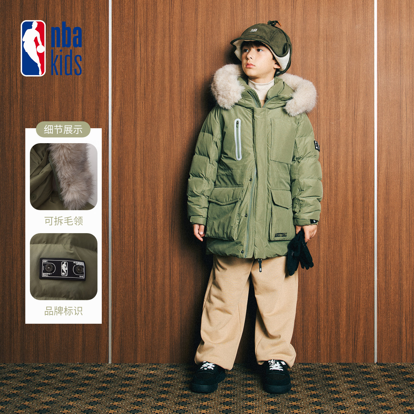 📚 nbakids童装2025冬季新款男女童工装中长款羽绒服保暖K254DW060P