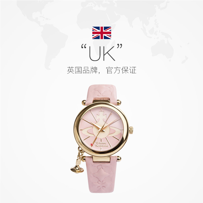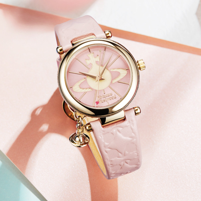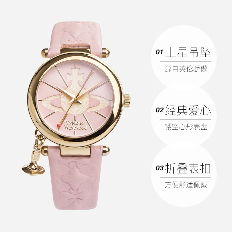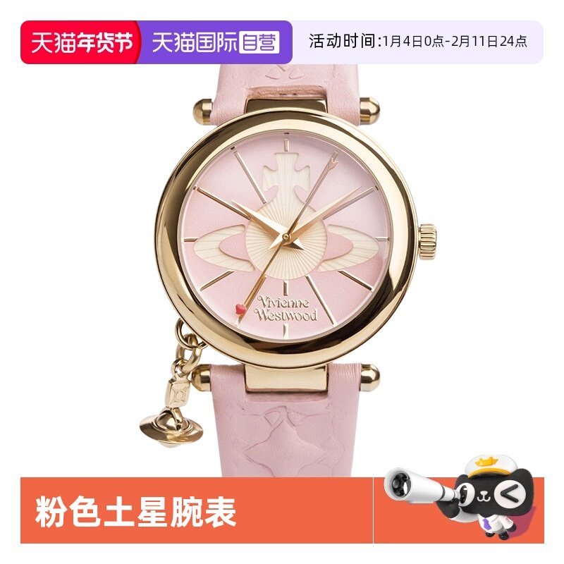 📚 【自营】VivienneWestwood薇薇安西太后粉色土星手表真皮表带腕表