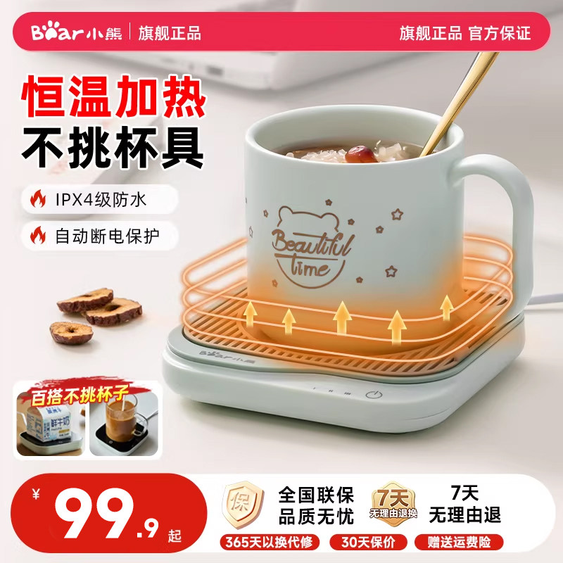 📚 小熊恒温杯垫加热牛奶神器暖暖杯55度恒温杯家用保温水杯加热底座