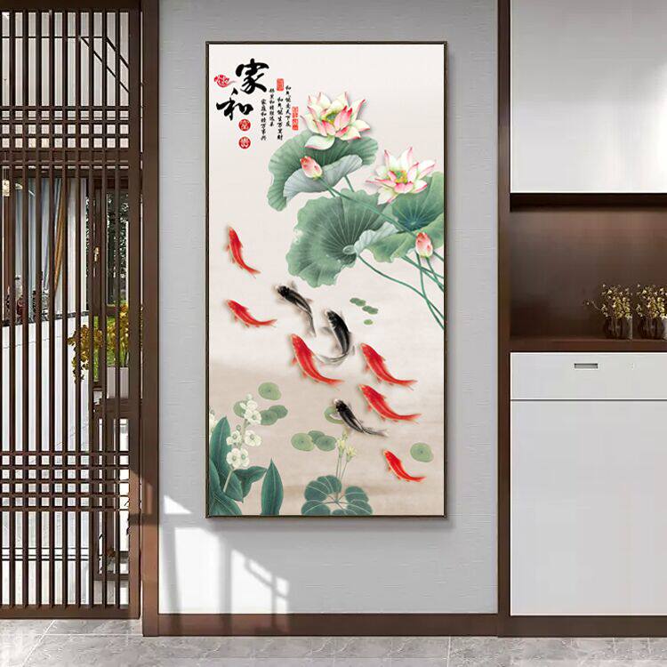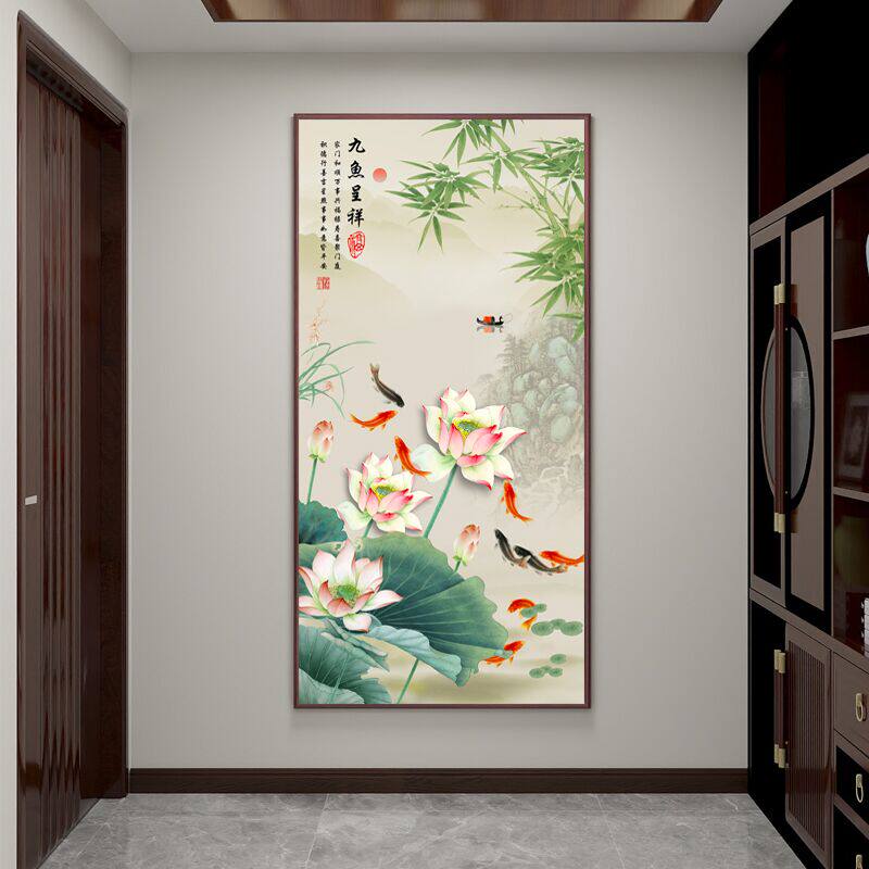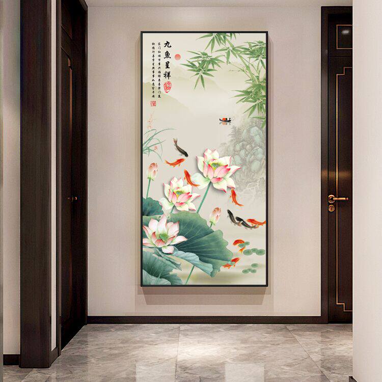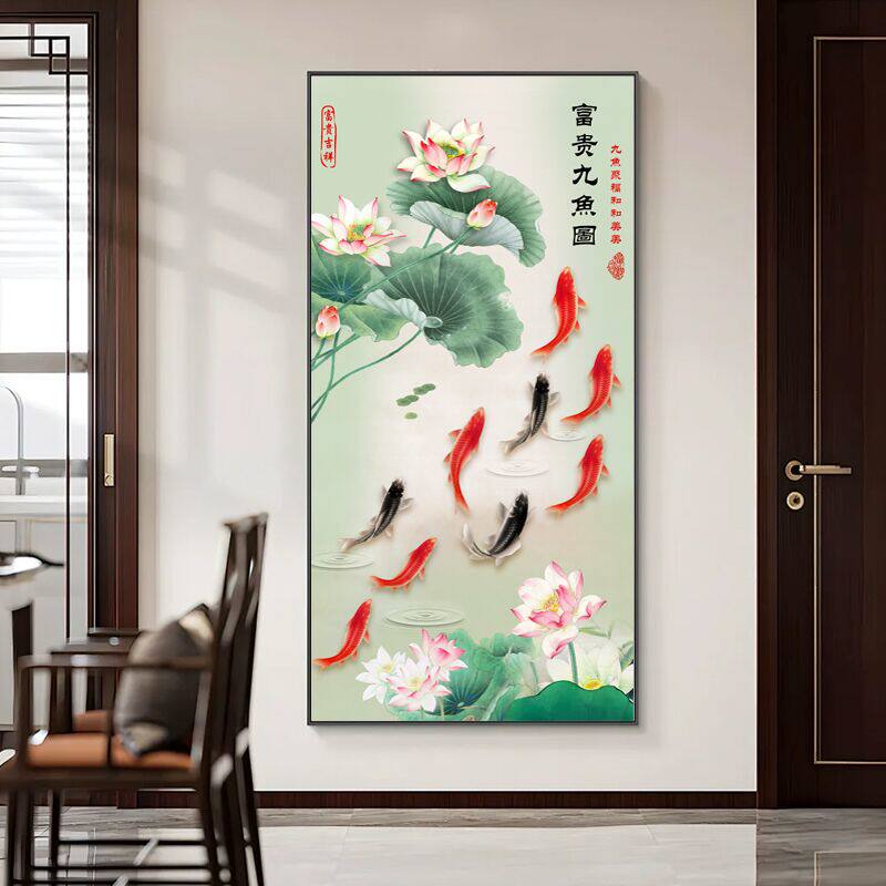 💥惊艳入门的九鱼图玄关装饰画,带你领略荷花图入户的正对门鲤鱼,招财又美观!💰