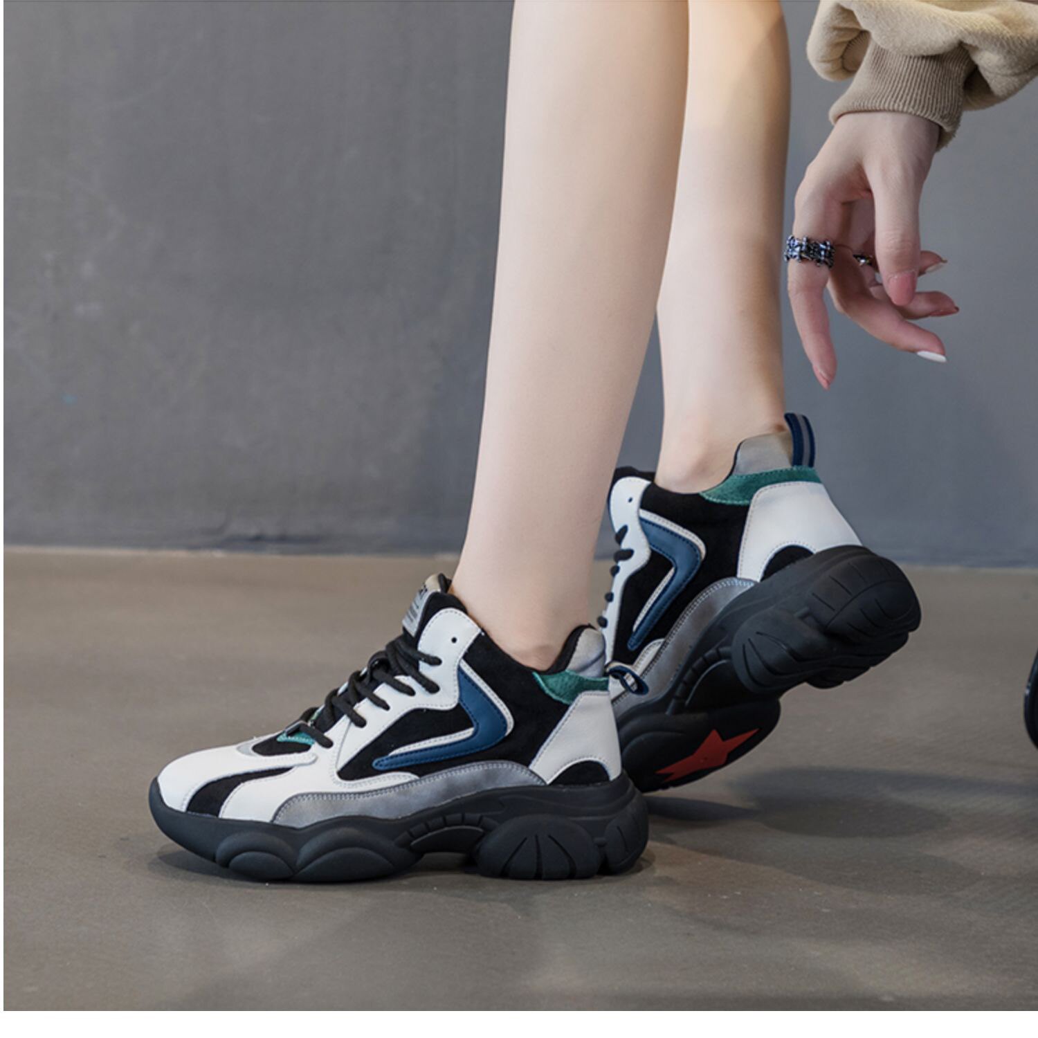 📚 千佰莉2024加绒老爹鞋女款秋冬新款鞋子女厚底增高大码女鞋运动鞋