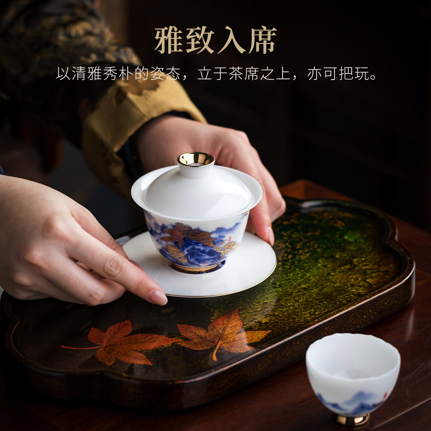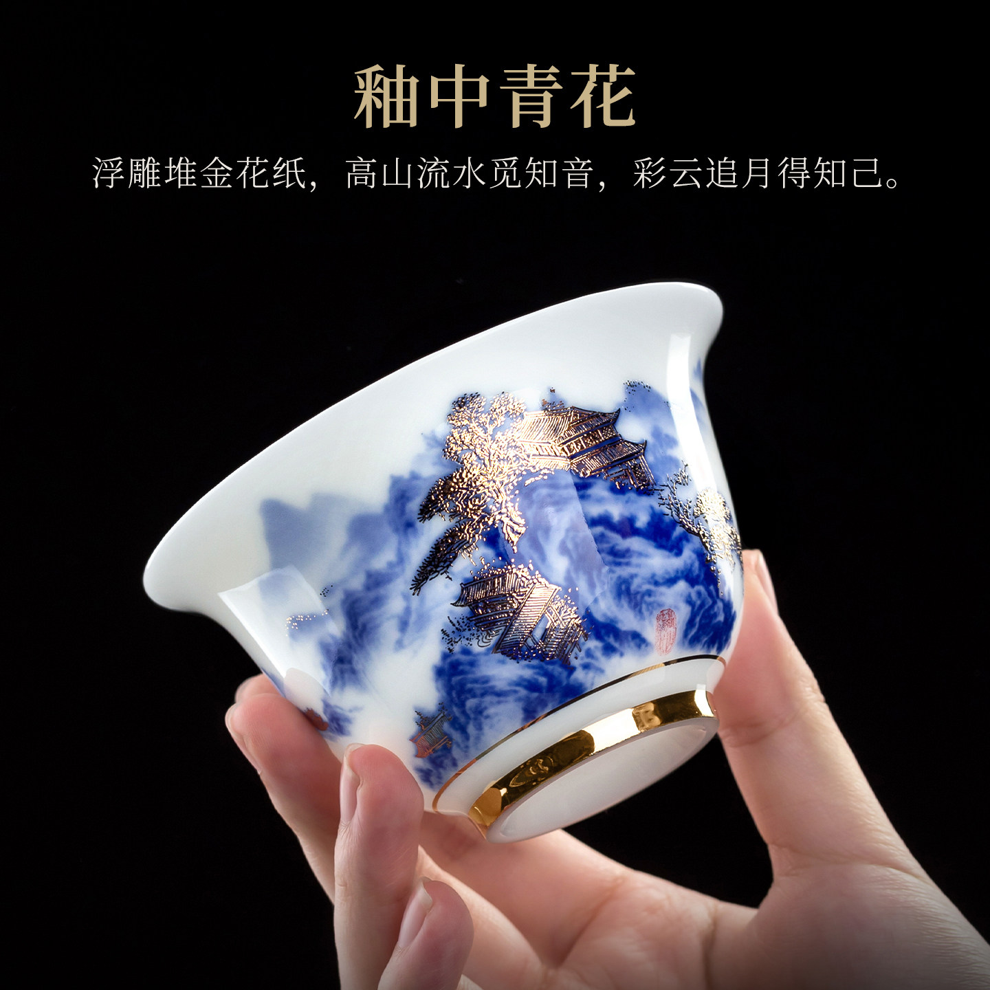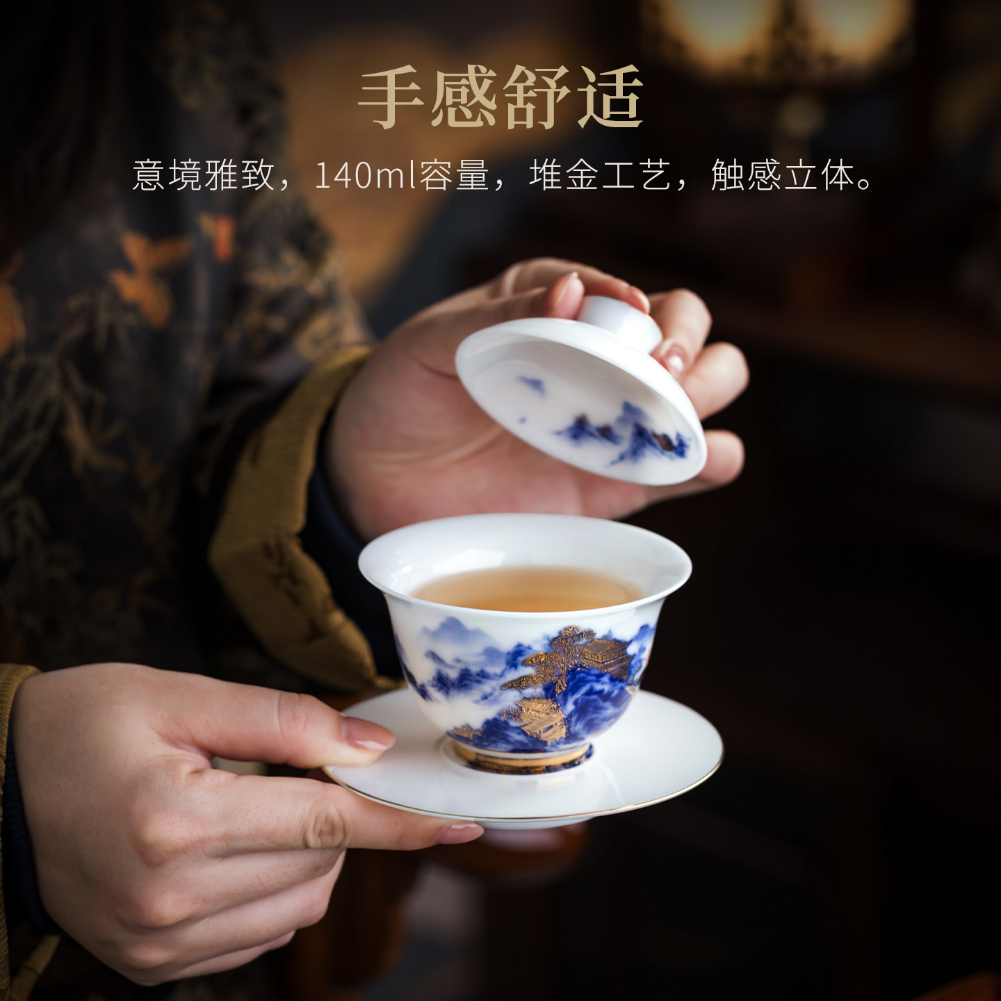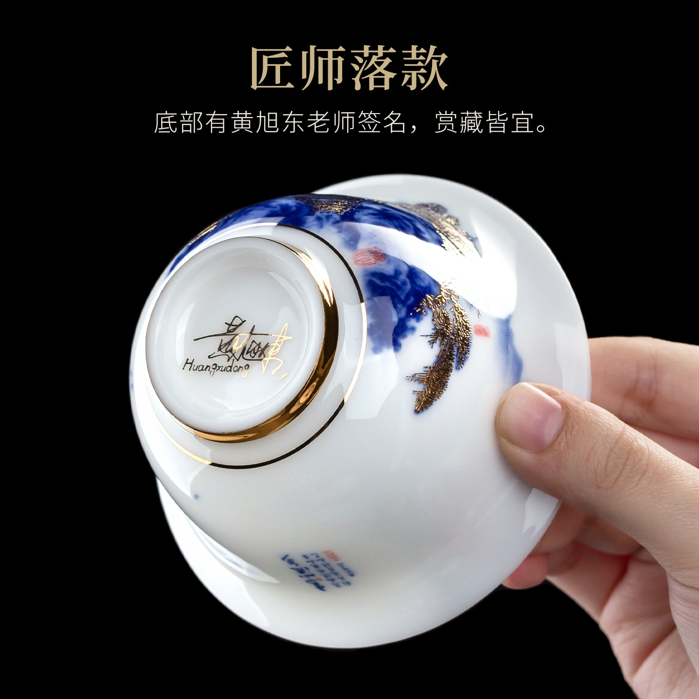 📚 妙莲天香黄旭东大师《高山流水》三才盖碗高端陶瓷青花茶具泡茶碗