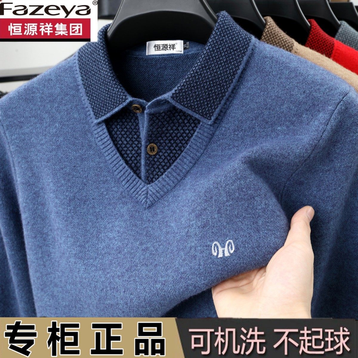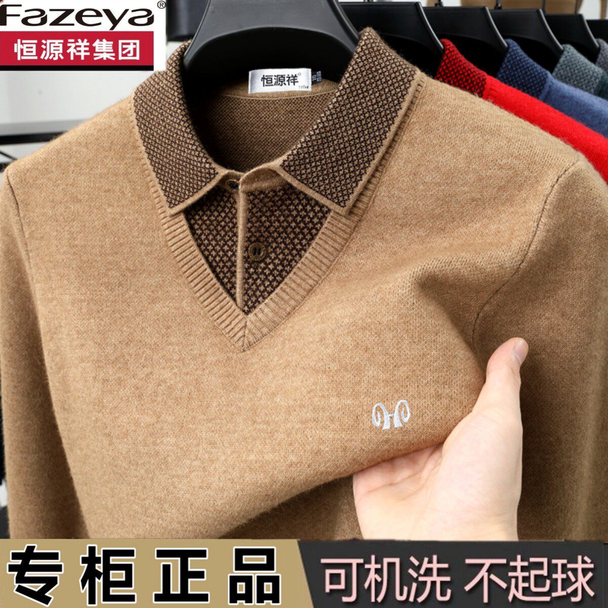 📚 恒源祥集团彩羊绒衫男款冬季加厚保暖假两件打底针织衫男翻领毛衣