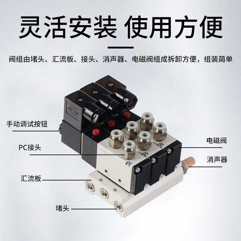 📚 亚德客电磁阀组4V210-08气动气缸电磁阀岛导气动集装AirTac阀组