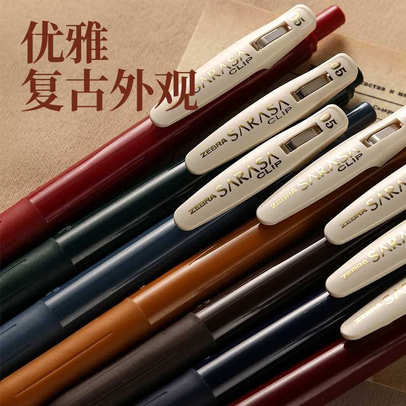 📚 日本ZEBRA斑马JJ15复古笔SARASA按动彩色中性笔复古色湖蓝酒红0.5