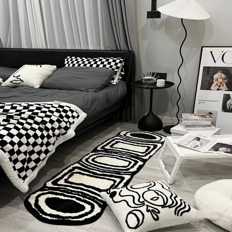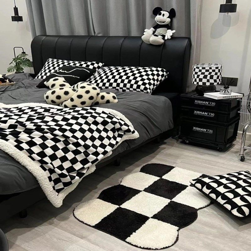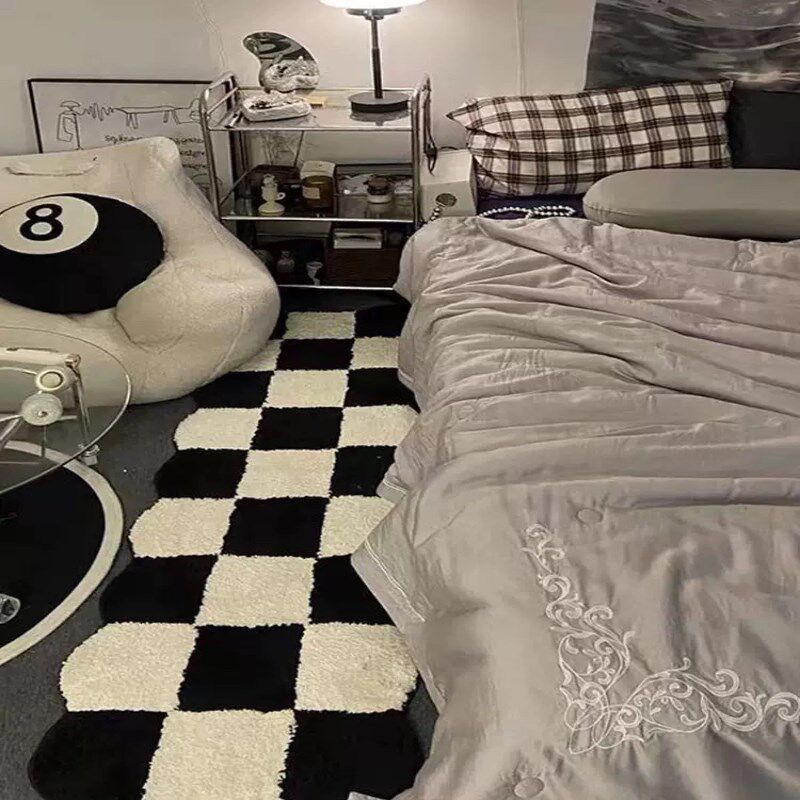 📚 地毯卧室女生爱黑白格床头少女耐脏小型易洗厚实男童小新垫