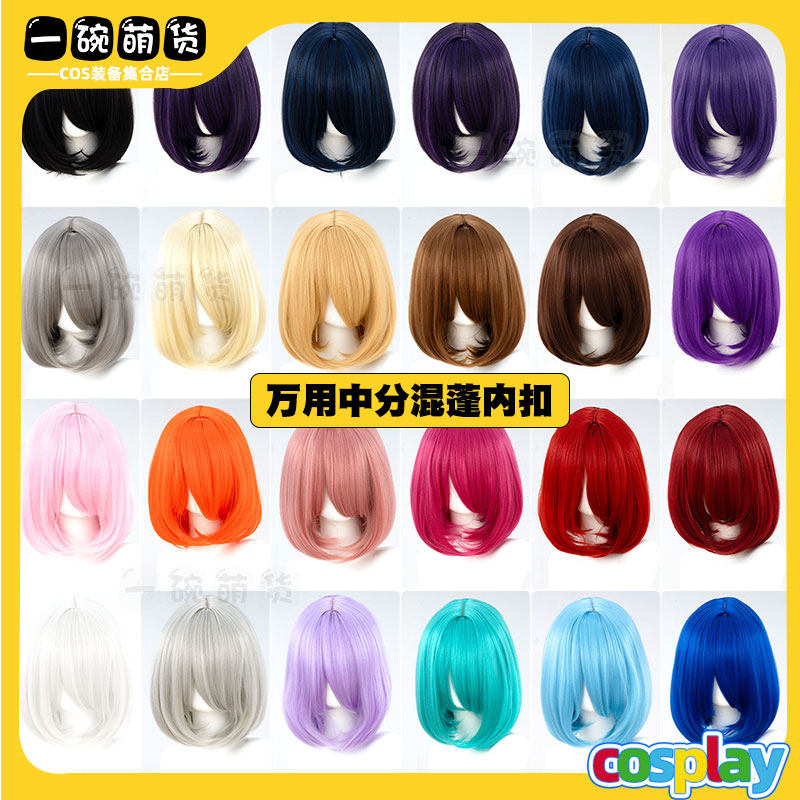 📚 万用35cos假发 波波头内扣收脸 梨花头混丝加蓬中分毛坯混蓬
