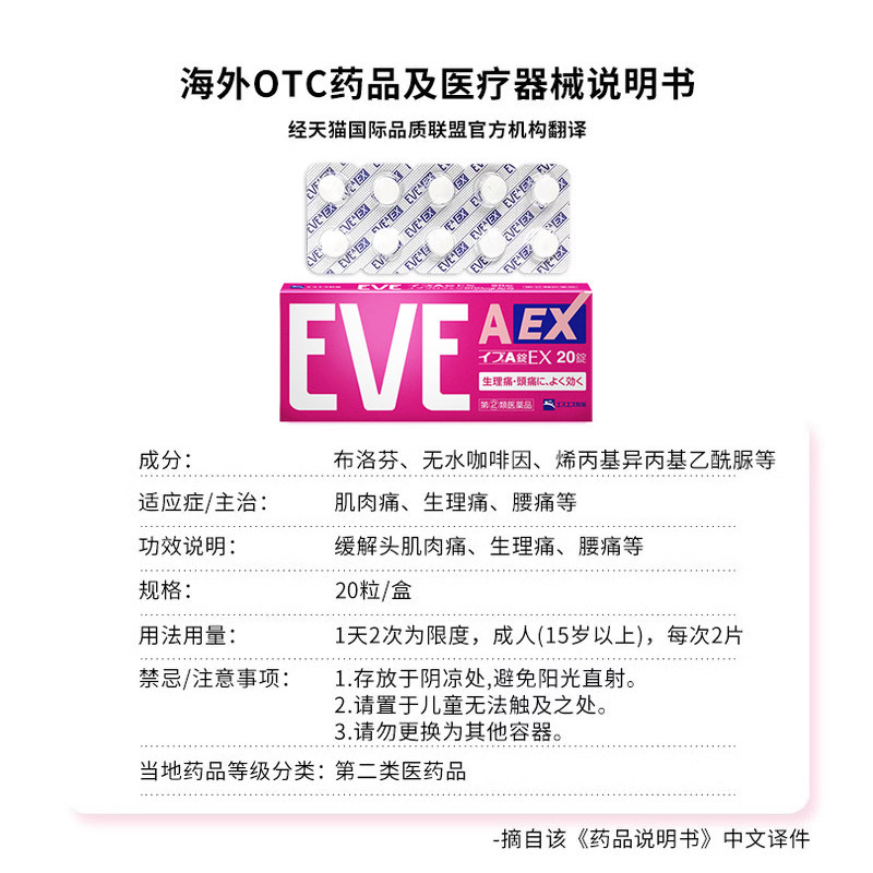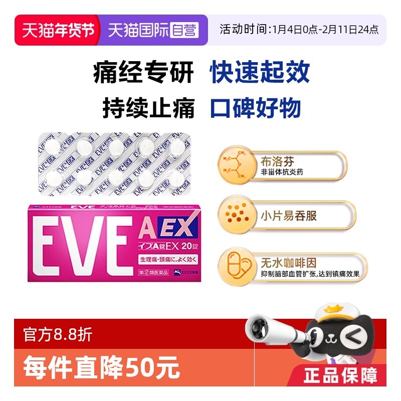 📚 【自营】日本SS制药白兔牌eve白色A锭EX20粒头疼头痛药止疼止痛药