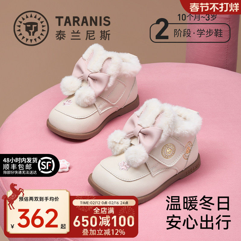 📚 泰兰尼斯女童学步鞋冬季新款小玛丽加绒加厚大棉鞋女宝宝防滑靴子