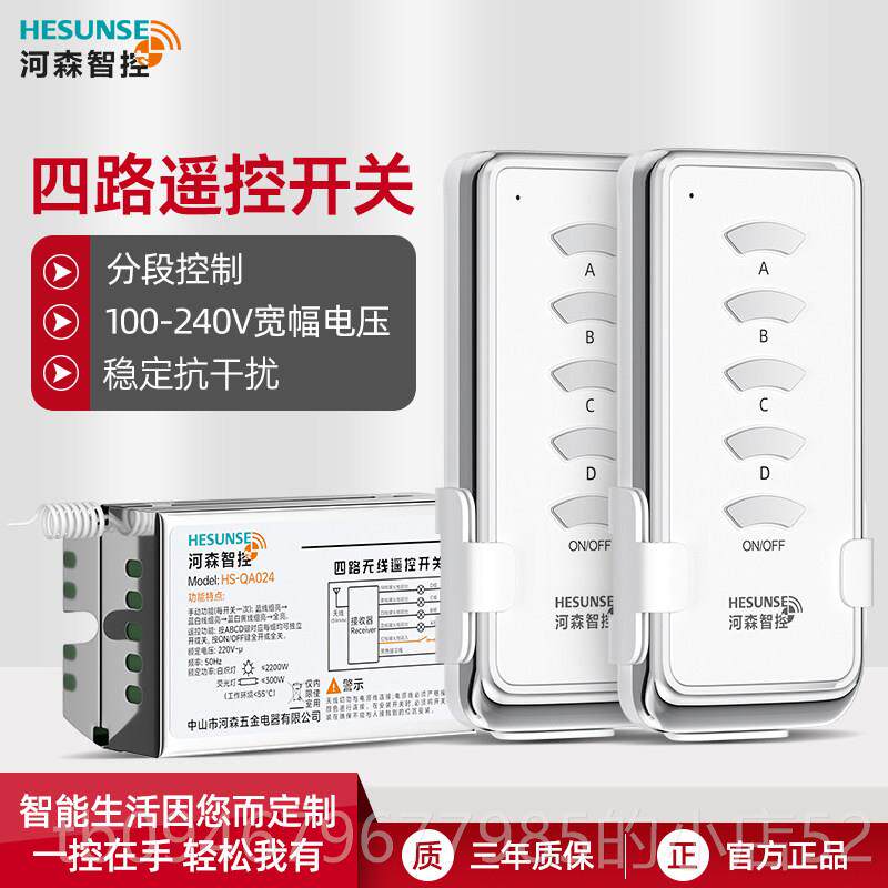 📚 正品河森 无灯 4路灯具双遥控开关220V四路 能家用照明线电源智