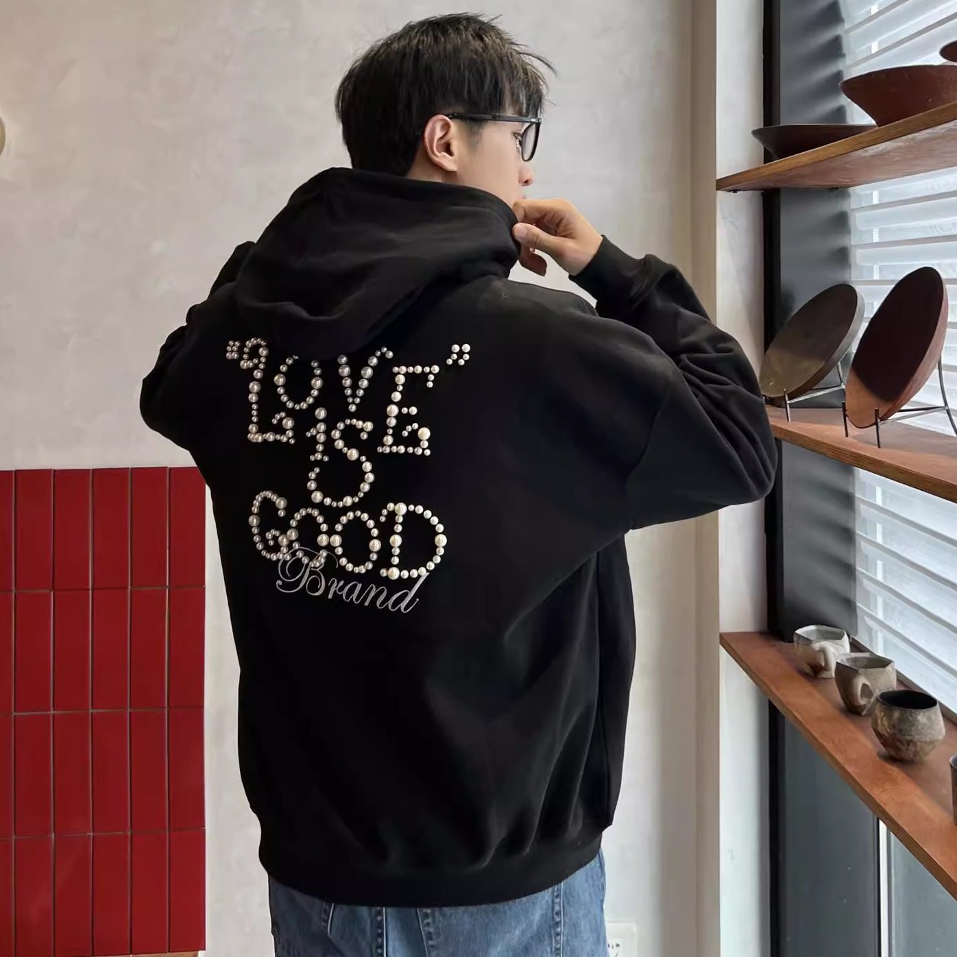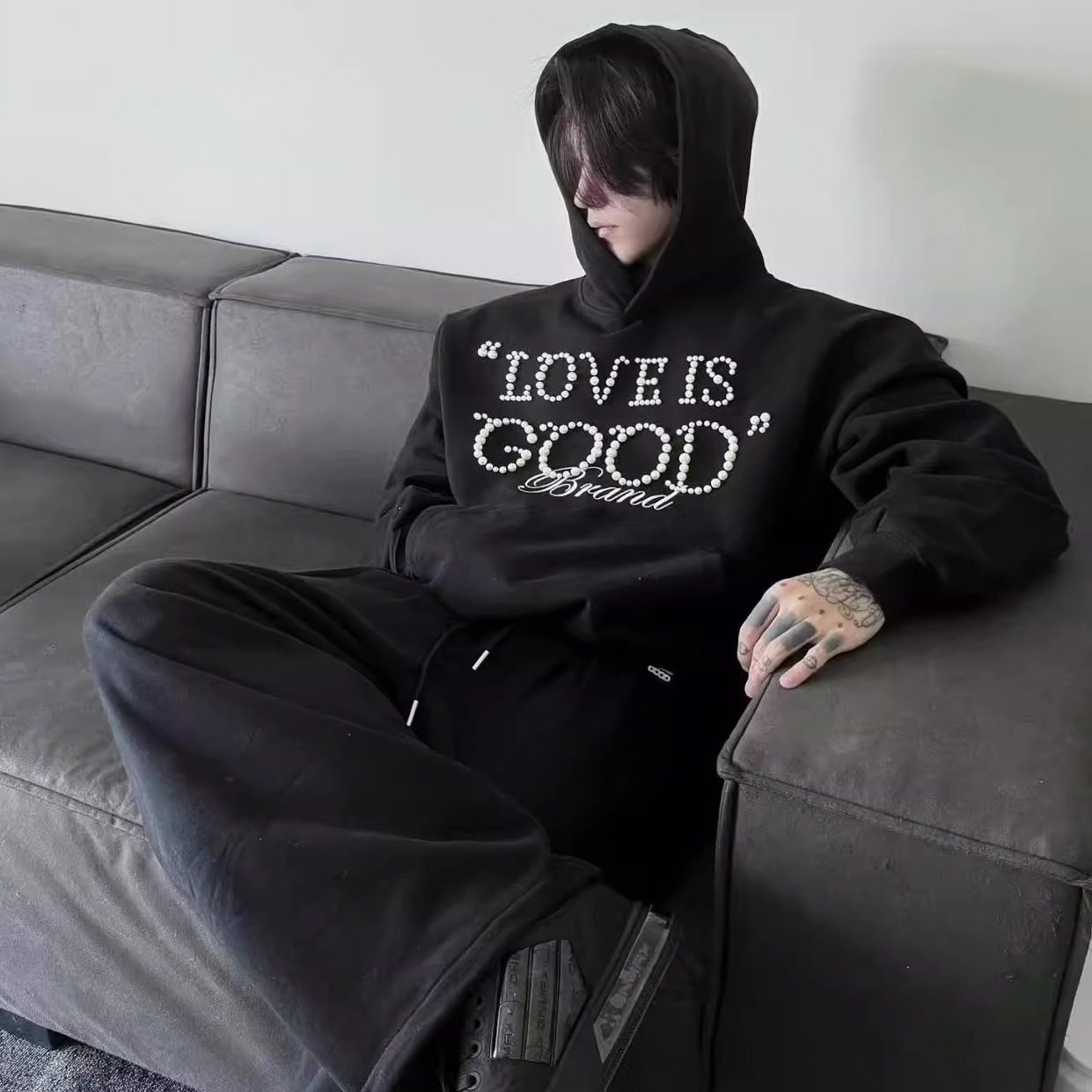 📚 秋冬新款GOOD珍珠标语刺绣字母连帽卫衣男女潮牌重磅宽松百搭帽衫