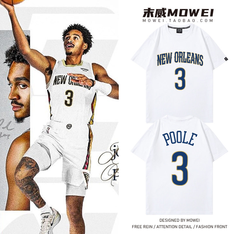 📚 鹈鹕队普尔3号球衣男美式休闲运动训练服宽松纯棉短袖T恤夏季潮流