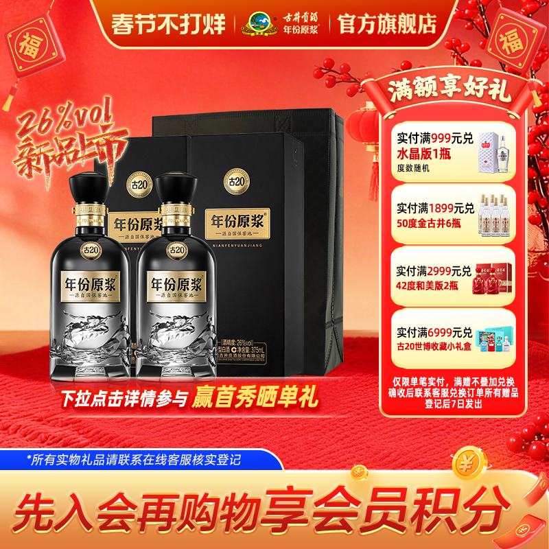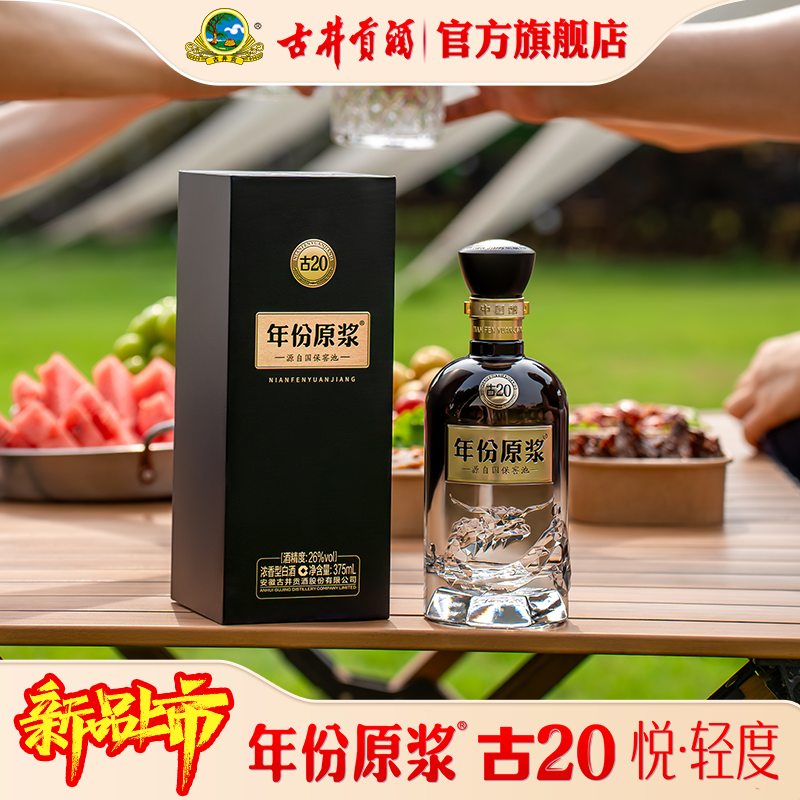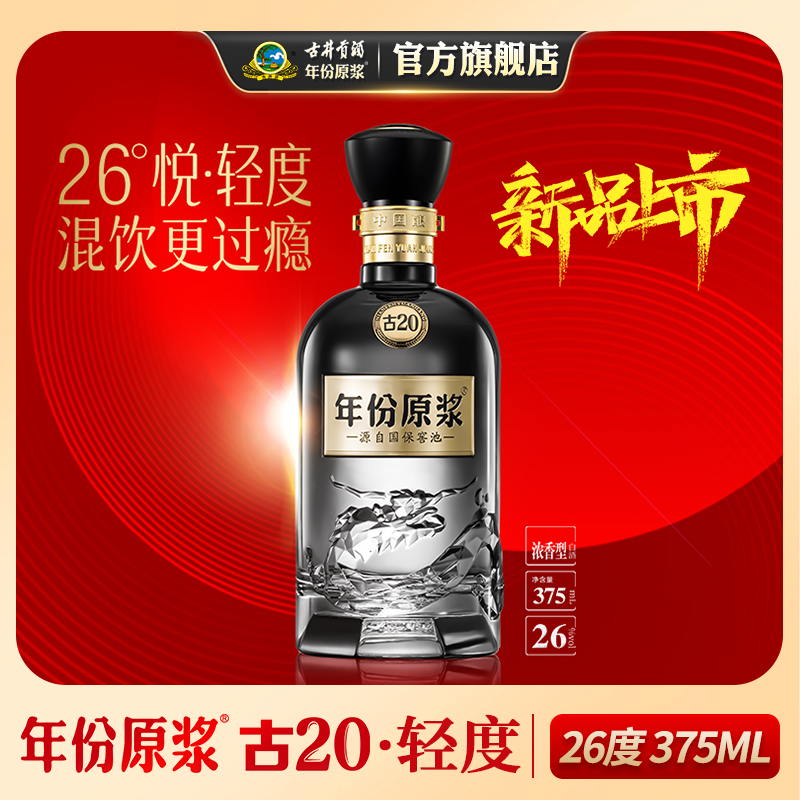 📚 古井贡酒 年份原浆古20 26度浓香型白酒 26度375mL悦轻度 2瓶装
