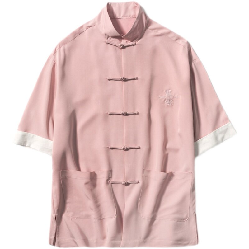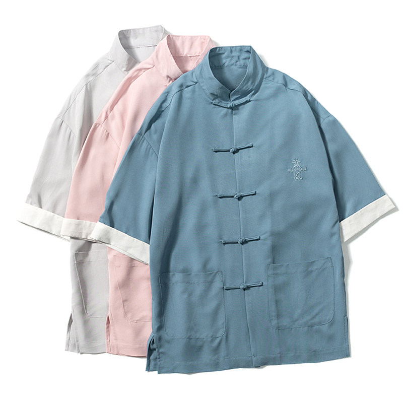 📚 无梦唐装男短袖中国风宽松文字刺绣盘扣上衣男女中式情侣复古汉服
