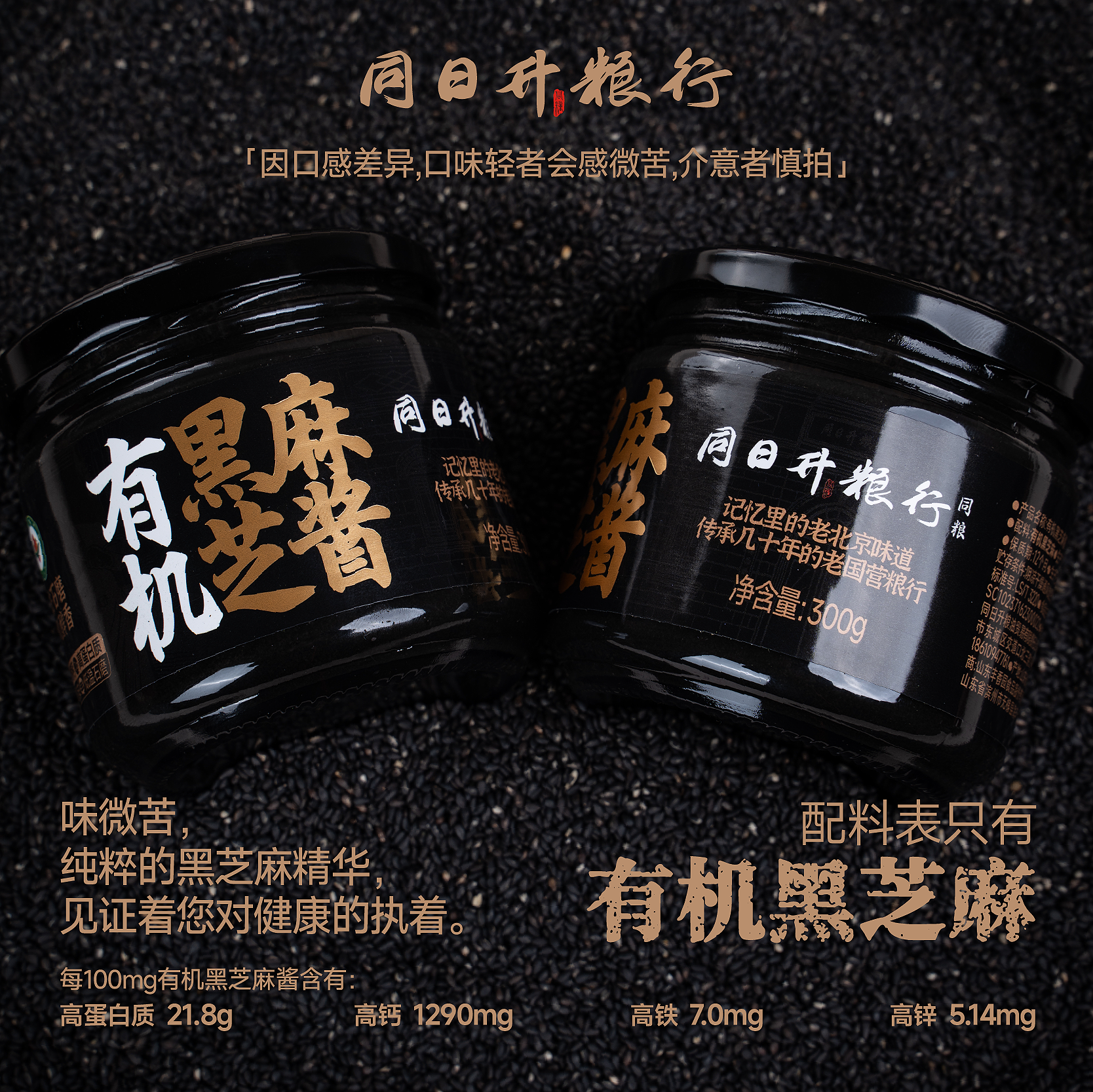 📚 同日升纯黑芝麻酱有机认证全新升级款300g营养酱面包抹酱