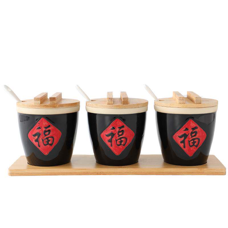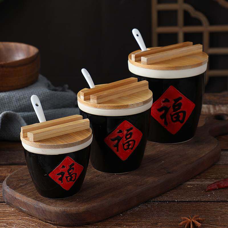 📚 2个包邮陶瓷福字小水缸迷你小酱缸餐桌摆件调味罐调料罐带盖小缸